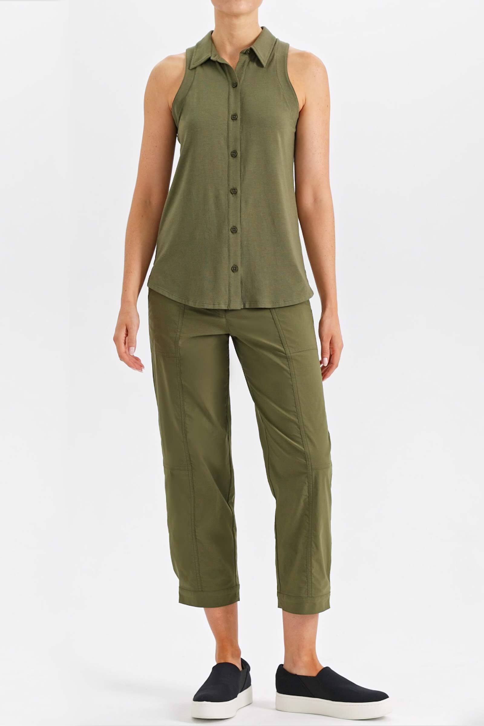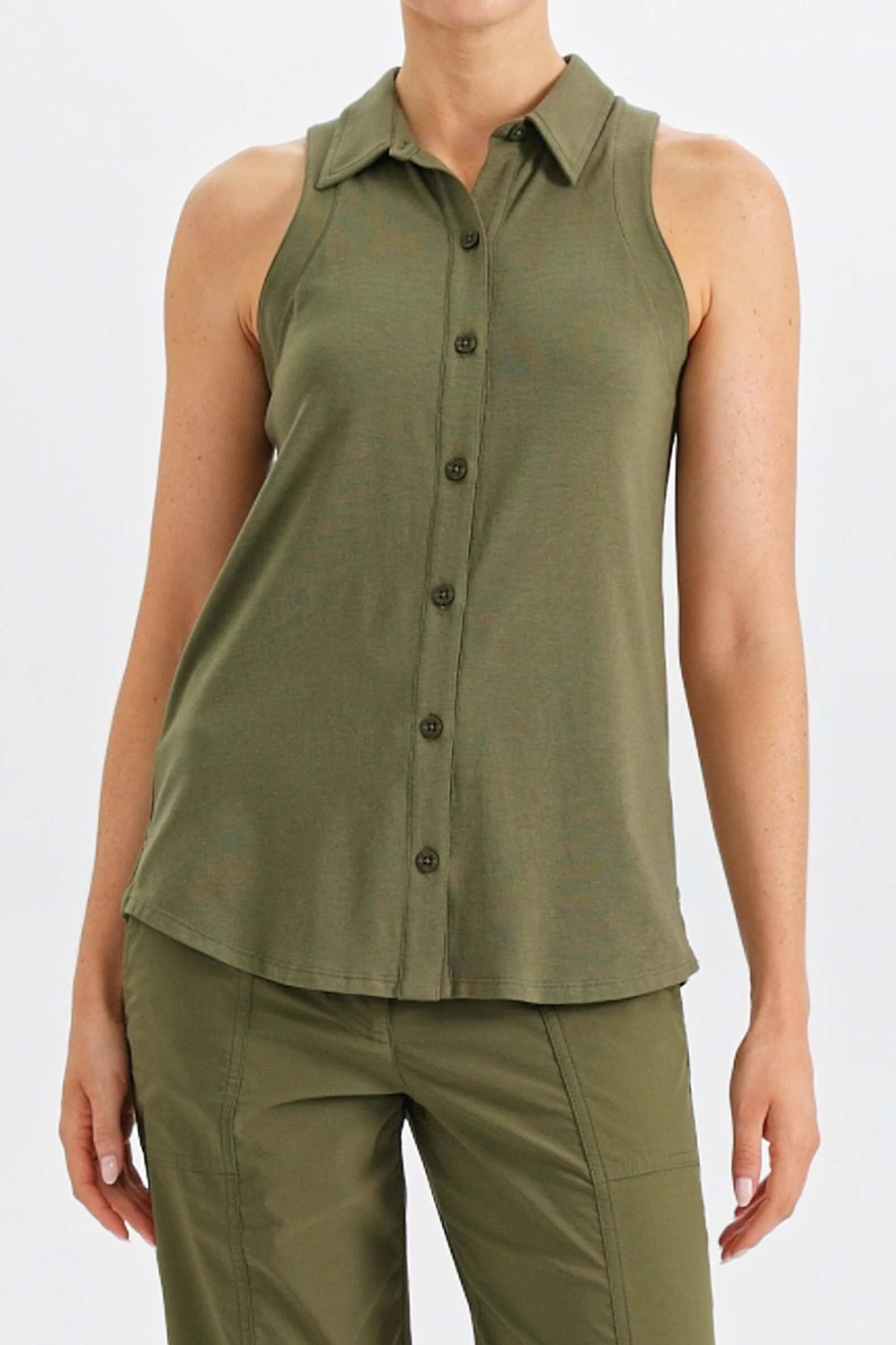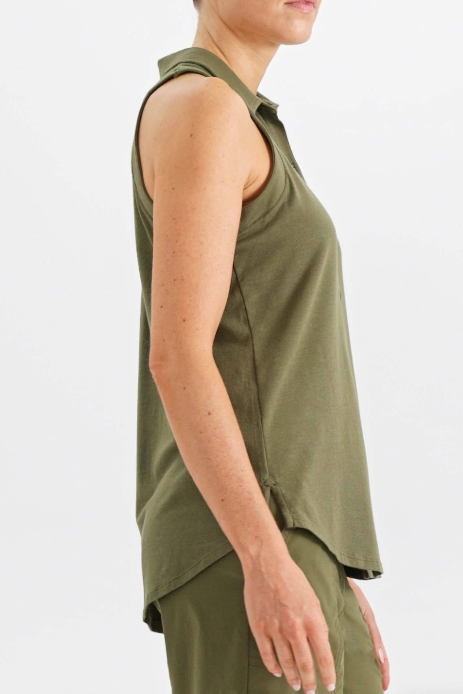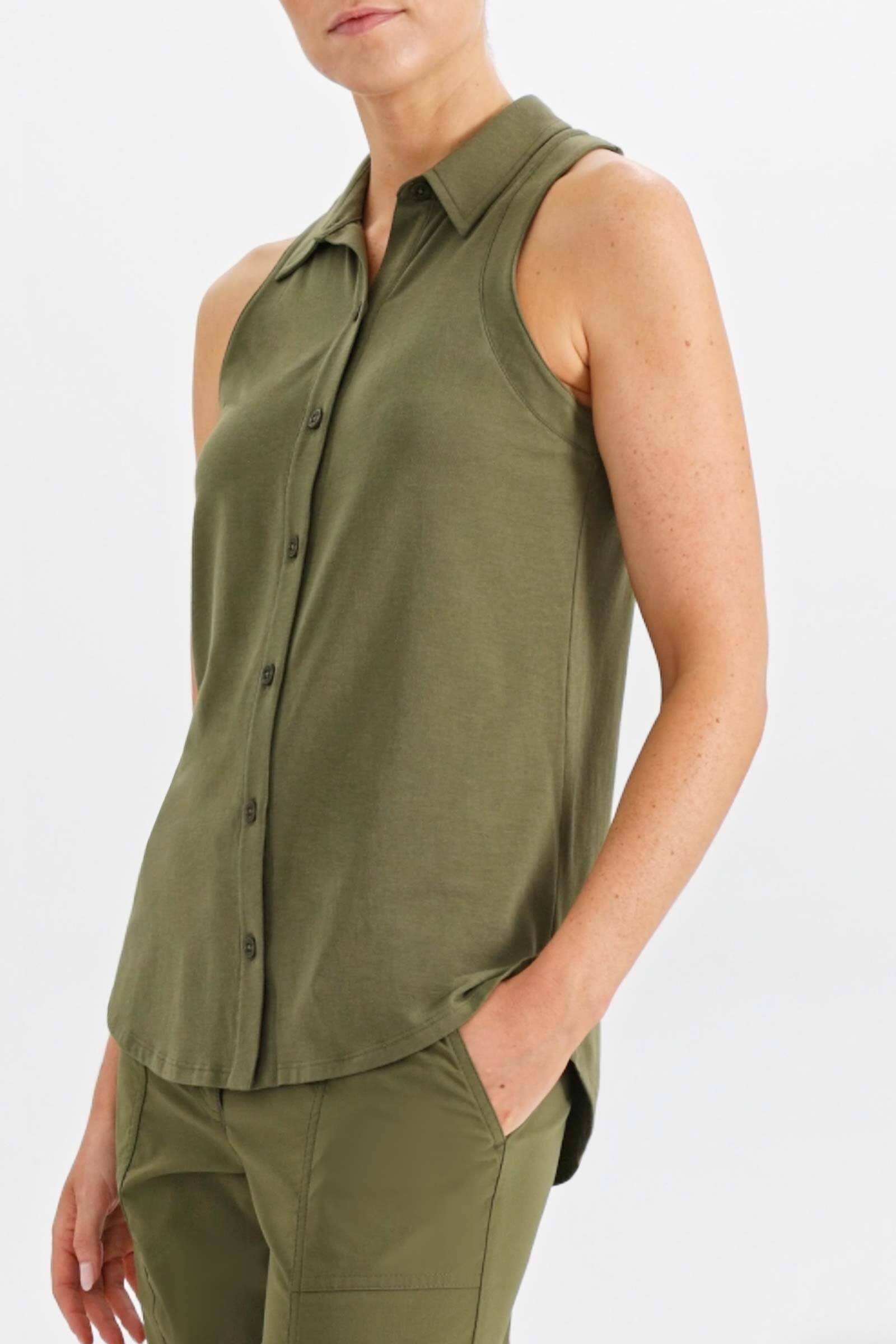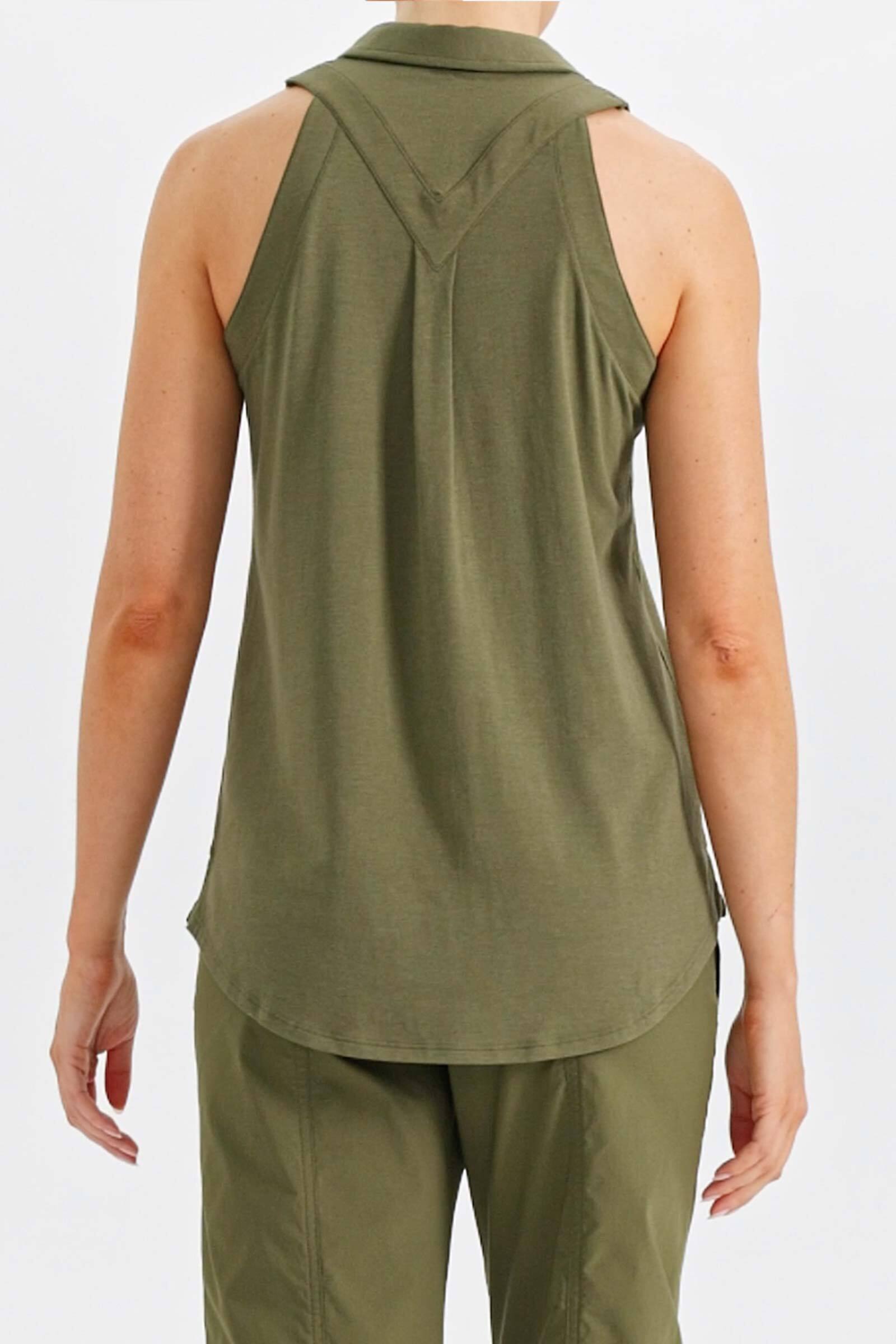The classic collared shirt, transformed for all your adventures. Crafted in a stretch blend with high-quality Peruvian Pima cotton for ease of movement and all-day comfort, this sleeveless top presents a crisp and polished look. The Elise is detailed with a geometric racerback, a slight high-low hem, and gathering at the center back for an easy, flowy fit. You’ll love this fashionable take on the most versatile sleeveless top.