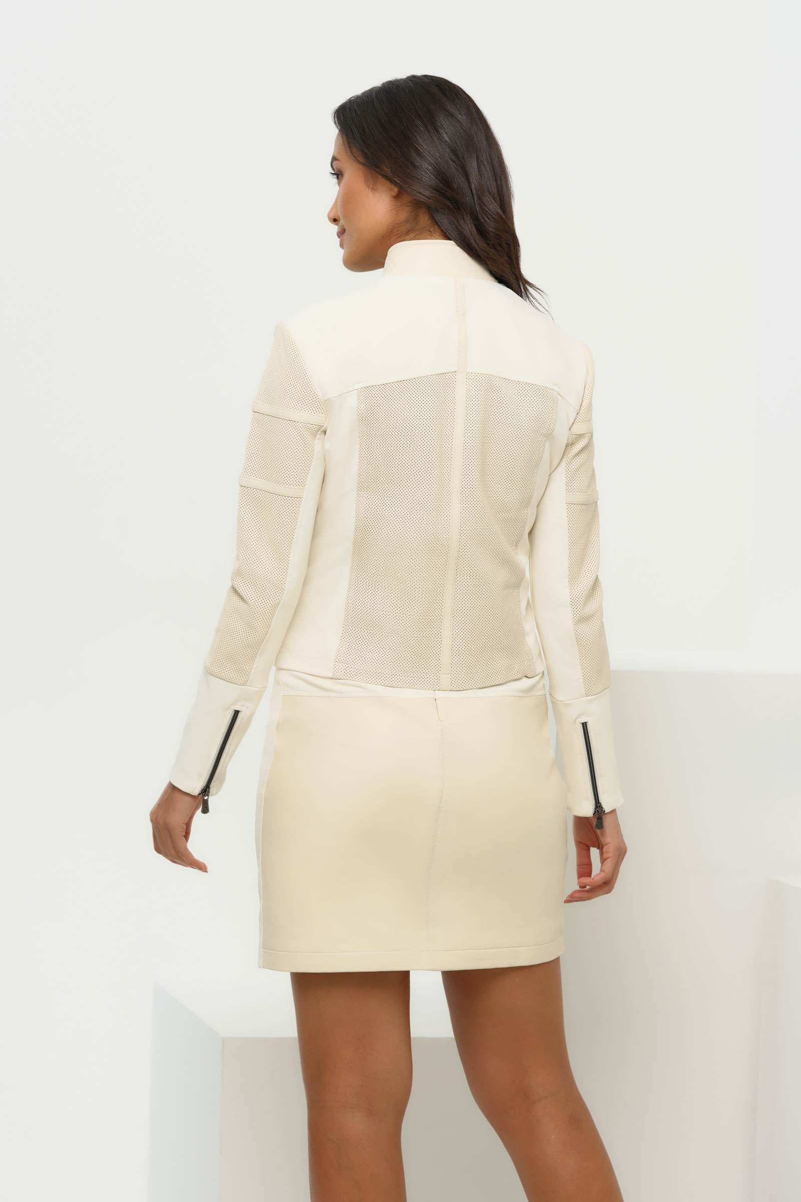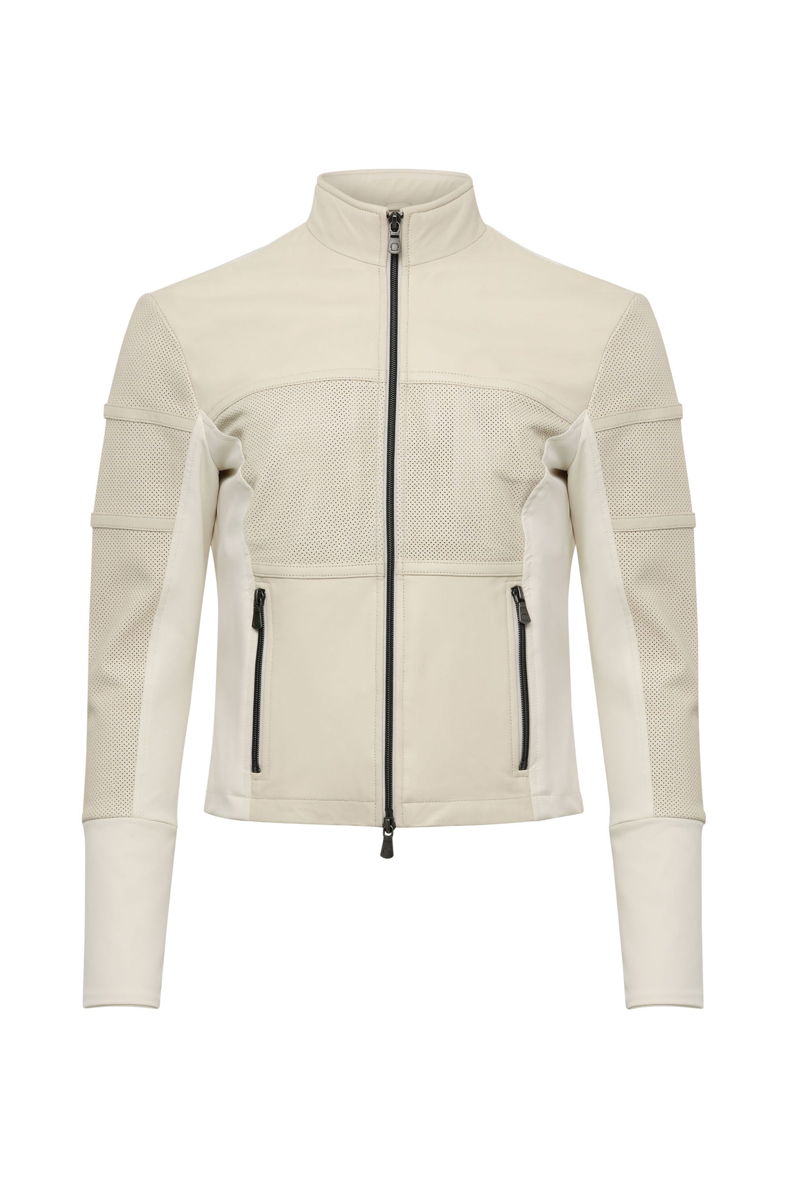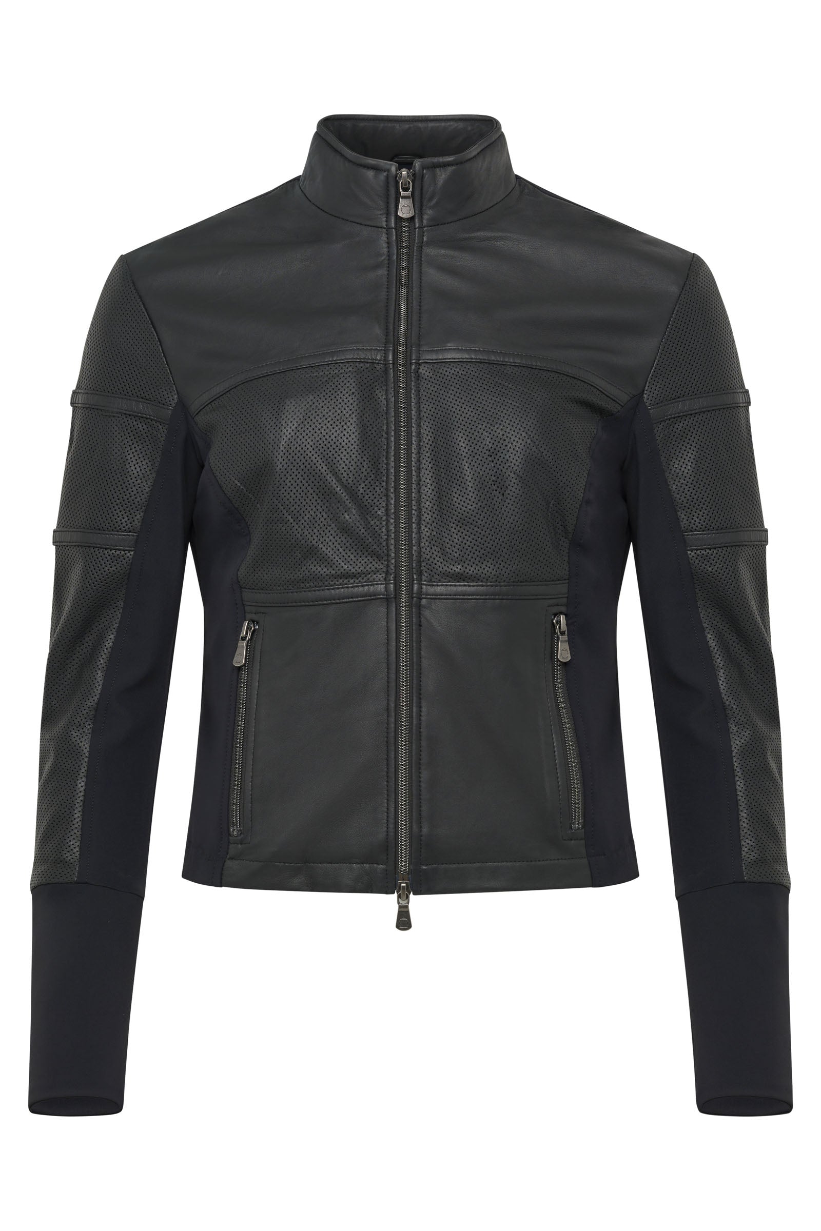 The Erin Leather Jacket is all about the details. Featuring perforated leather panels, soft-stretch waist fabric, and two-way zippers, this jacket is sure to turn heads. Pair it with your go-to jeans or complement it with our latest Anatomie leather styles.