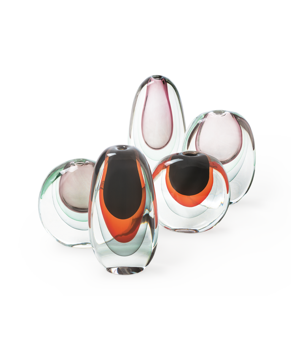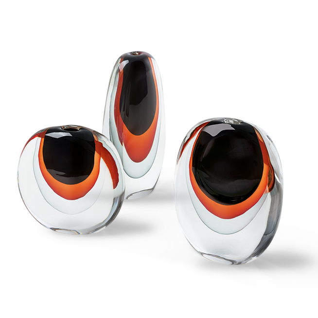 The ESSENCE line showcases the finest craftsmanship of blown glass and preserving their artistic heritage. The cased glass method, which involves overlaying several layers of glass to create a fully saturated, three-dimensional impression, is used to create each vase. These vases capture the classic charm of artisanal design and bring sophistication and brilliant color to any area.