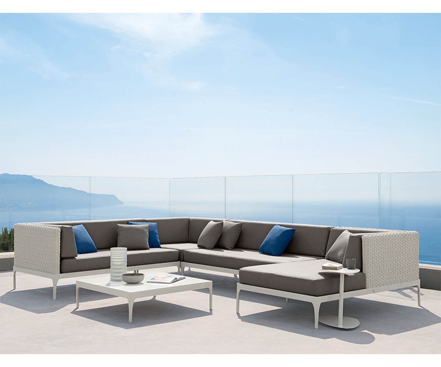 The Floor Sample Smart Table is a stylish outdoor aluminum side table, perfect for pairing with loungers and lounge chairs. The table's sleek white design adds elegance and convenience to any patio or poolside setting.