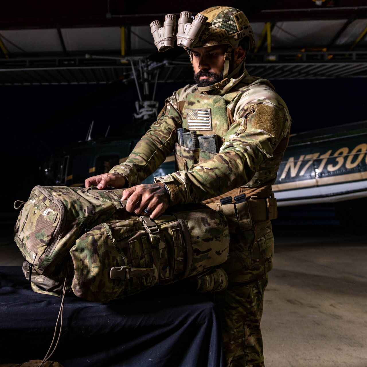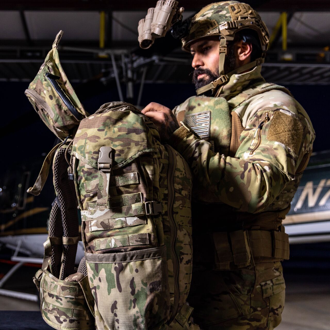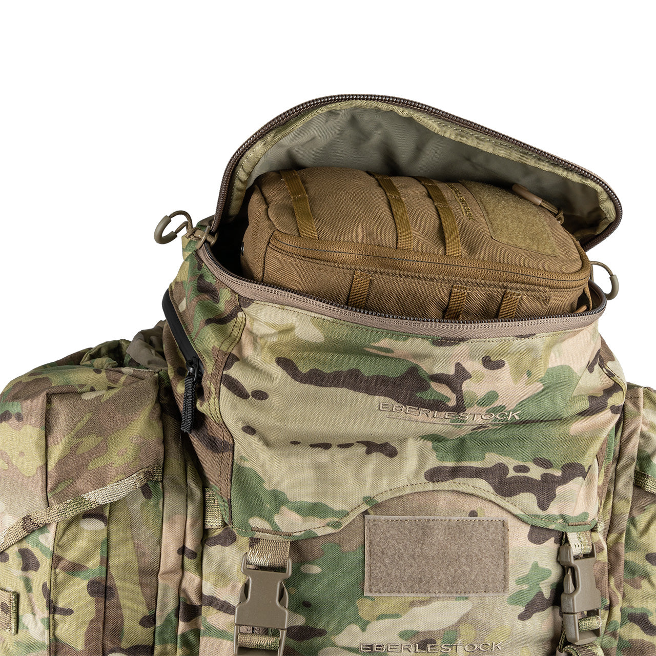 Although stripped down, the Tomahawk is still feature rich. A floating lid doubles as a removable fanny pack go-bag. Bottle holders, full length side pockets, and quick-stow sleeves are on each side. The main compartment is accessed through either a storm-collar top or the quick-pull spade front door. The interior features a Nylex back wall (15"x11"), tuck pockets, and EMOD Hookup links.