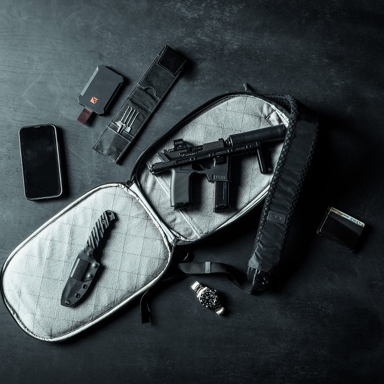 Eberlestock’s first true sling bag, the Fade Sling, is sized to accommodate full-sized pistols and ultra-compact PDWs (ex. Flux Defense Raider). Featuring ambidextrous access for every compartment, no matter the user or the environment, you can grab your EDC in an instant.