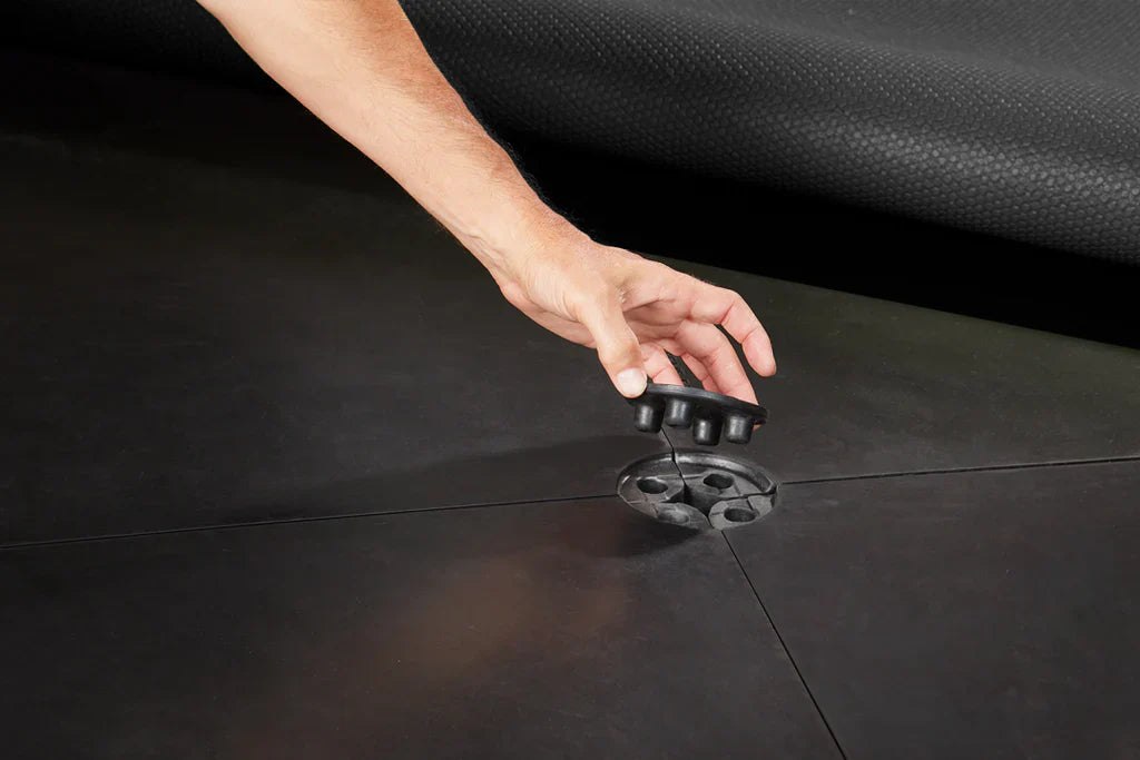- Our exclusive tool-free modular rubber foundation with easy-lock fasteners