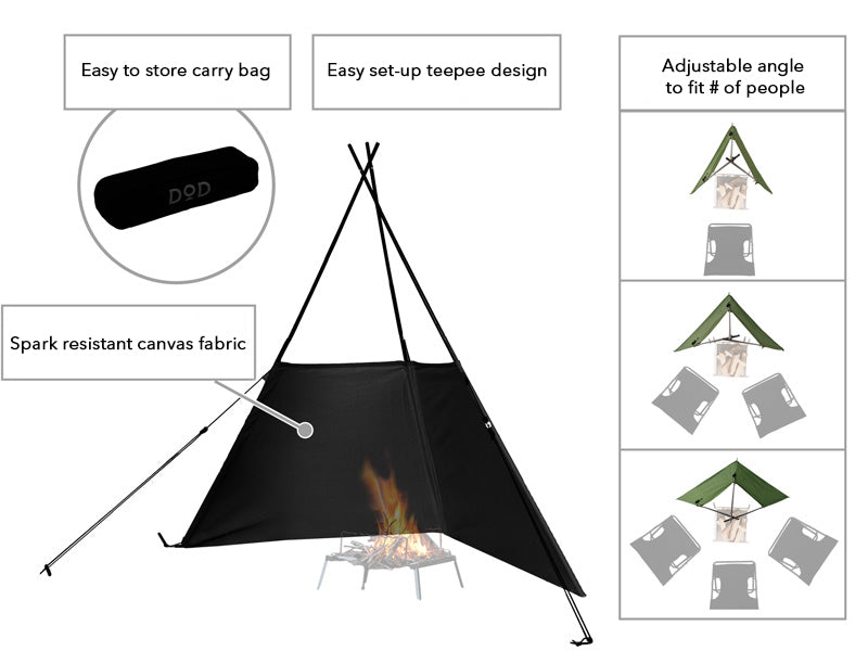 The Fire Break transforms your bonfire experience, shielding it from wind and enhancing safety. Its ingenious design prevents sparks from flying and ensures a more stable flame, all while reflecting heat towards you for added warmth. This teepee-style windbreak is easily adjustable, accommodating up to three people comfortably. It's made from durable cotton material resistant to spark damage, ensuring longevity and reliability during your outdoor gatherings.