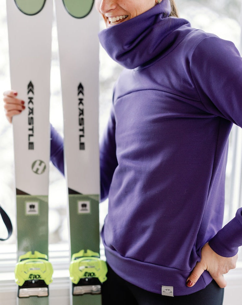 This ultra cozy yet breathable turtleneck has a sweatshirt quality to it. Wear this stylish top from the slopes to dinner and from the couch to the airplane.