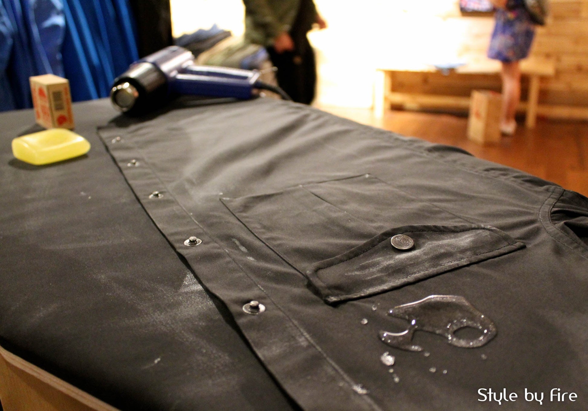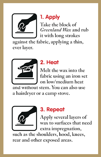 Greenland Wax with a smart pack bag. The bag is made from G-1000 Original with a natural tone leather label on the front. Provides water-resistant storage for the block of wax while out trekking so you can reinforce the functionality of your G-1000 garments at any time. Waxing instructions are printed on the inside of the bag.