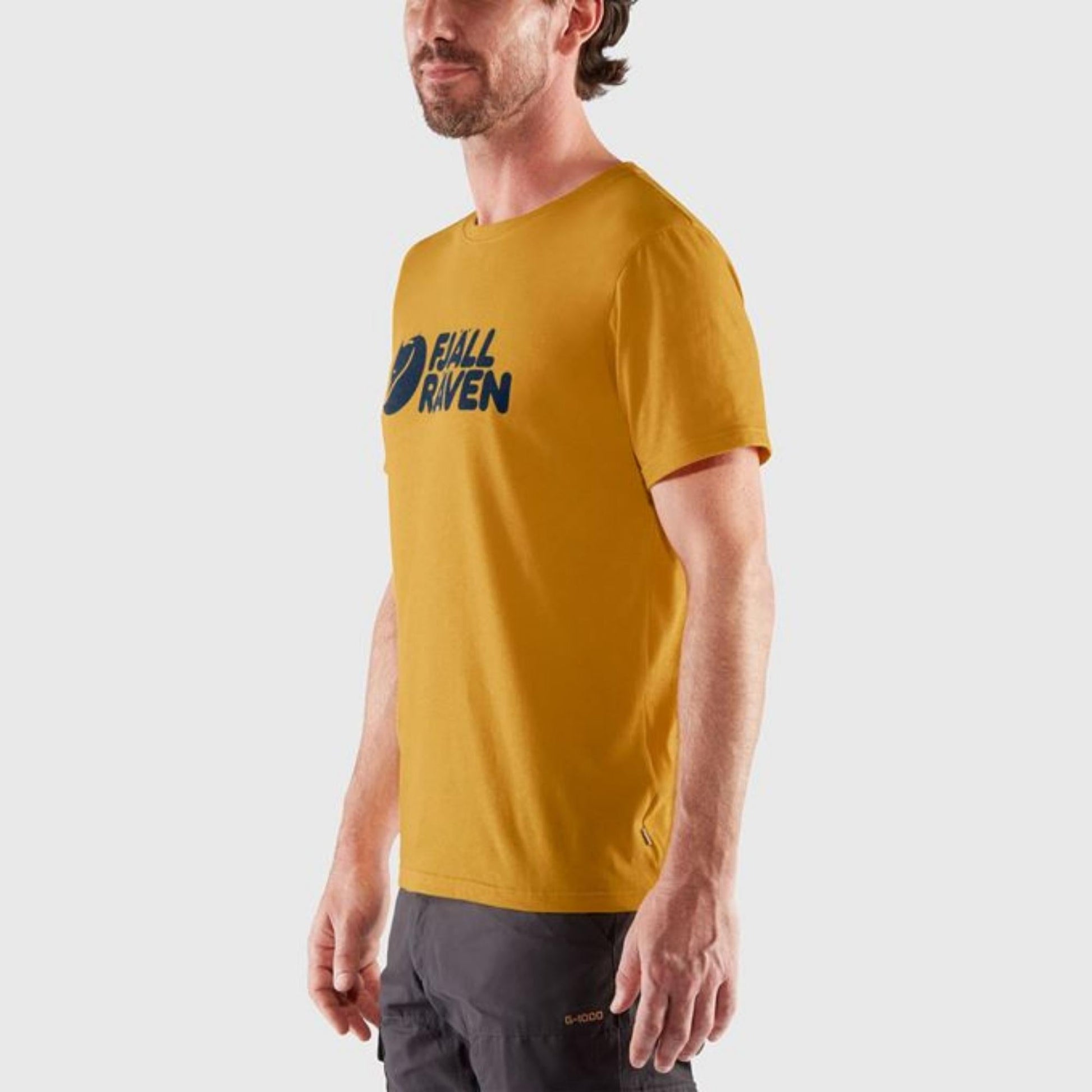 Short-sleeved t-shirt in a sustainable jersey knit that combines the softness of organic cotton with the functionality and durability of recycled polyester. Wicks away moisture and dries quickly, making it extra comfortable in warm climates. Round neckline and printed with the Fjällräven logo on the front.