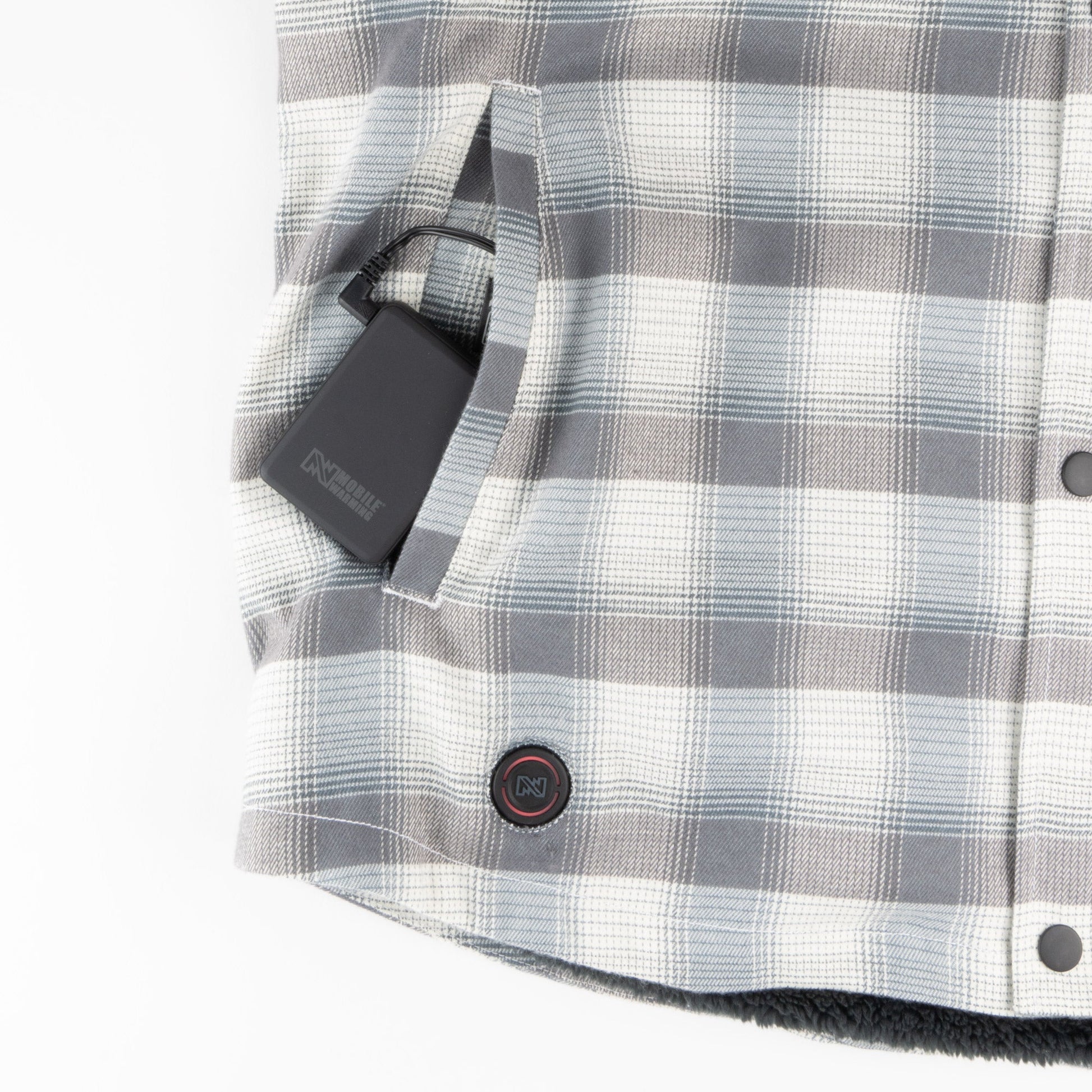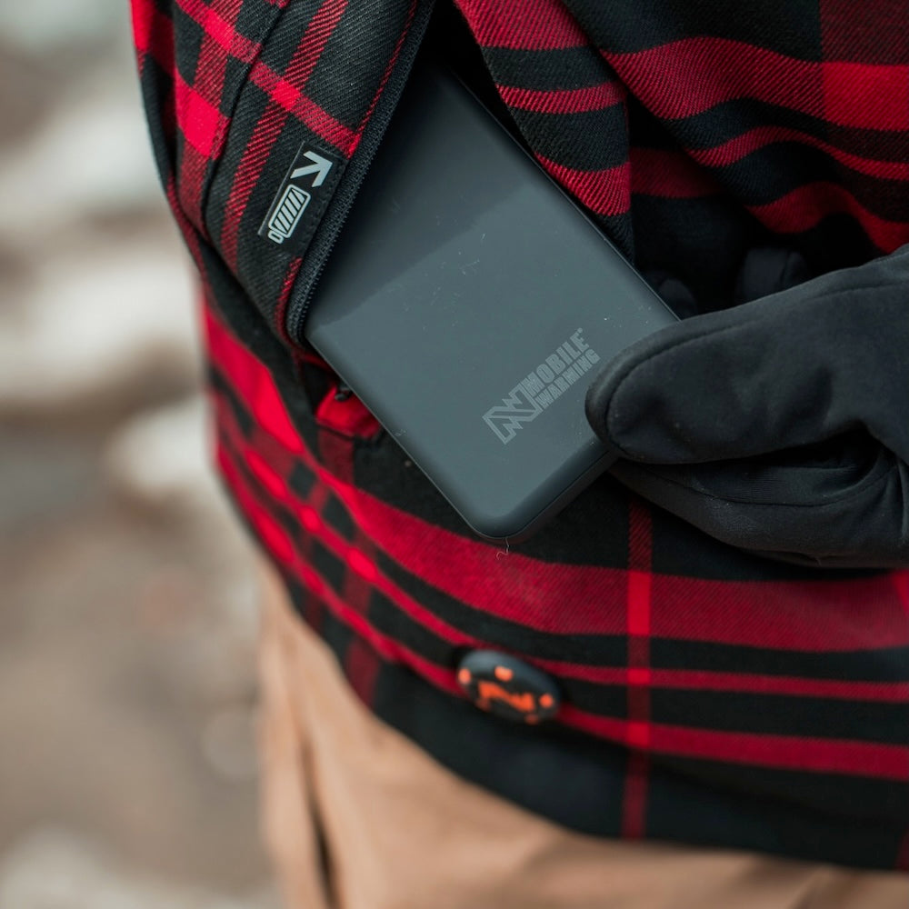 A classic yarn dyed brush flannel jacket with built-hoodie, dual zipper and metal snap closure provides an additional level of protection and advanced style. Thick sherpa fleece liner adds a level of comfort not found in traditional flannel jackets. We integrate a Mobile Warming heat system, with multi-zone adjustable heat to the front and back, easily adjusted directly from the garment, or from the convenience of your phone using Bluetooth Wireless control and our MW Connect App.