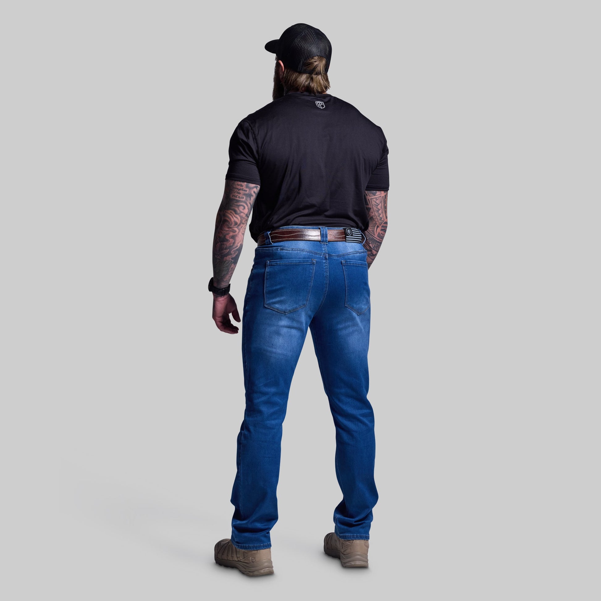 Crafted from stretchFLEX denim, this 4-way stretch jean maintains a classic boot-cut look while offering concealed carry functionality. It features two oversized magazine pockets hidden in the back yoke and two EDC pockets at the front hips, all designed for easy access when it counts. Large belt loops easily support gun belts, while the gusseted crotch and athletic fit deliver a comfortable, flexible fit.