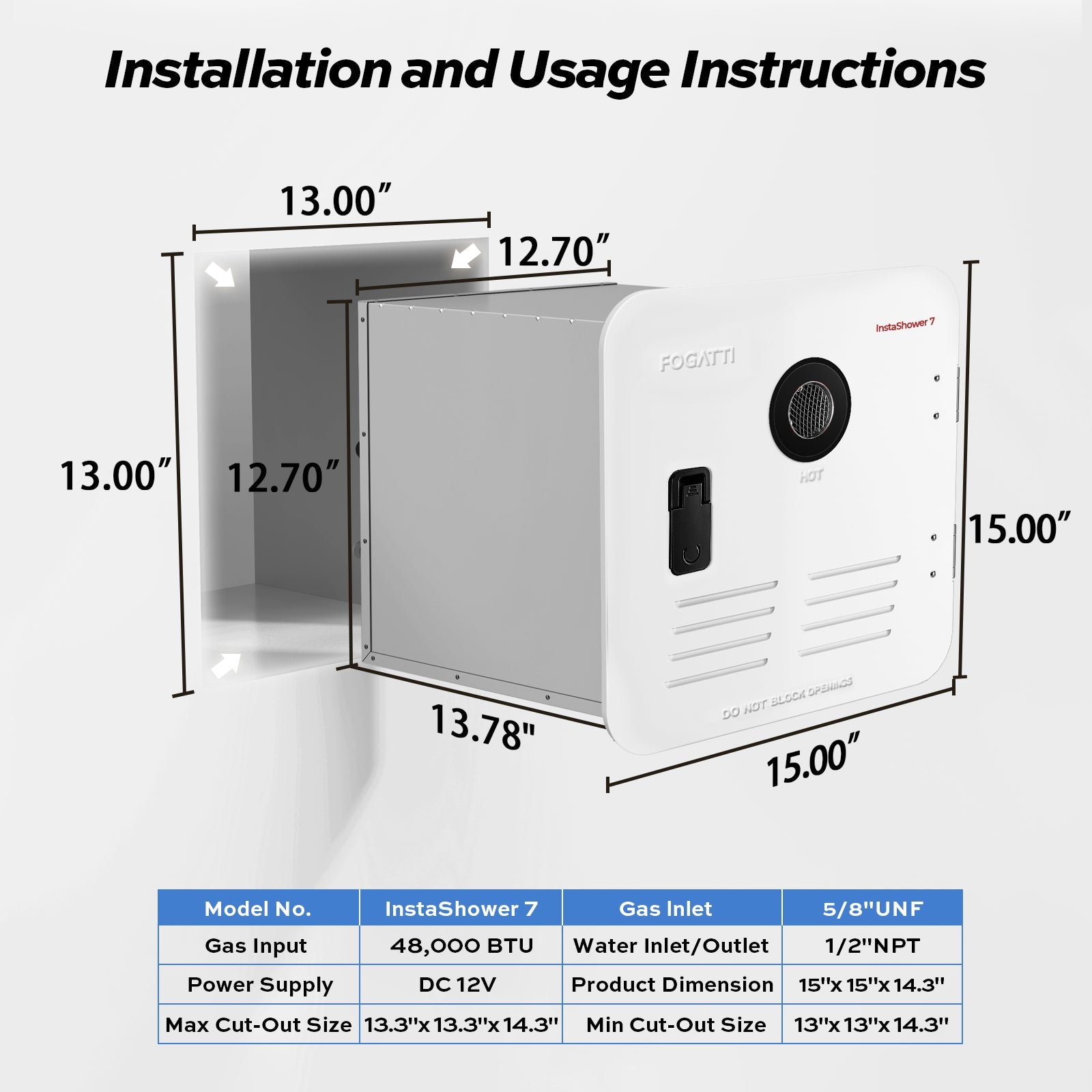 Introducing the Fogatti RV Tankless Water Heater: InstaShower 7, 48,000 BTU