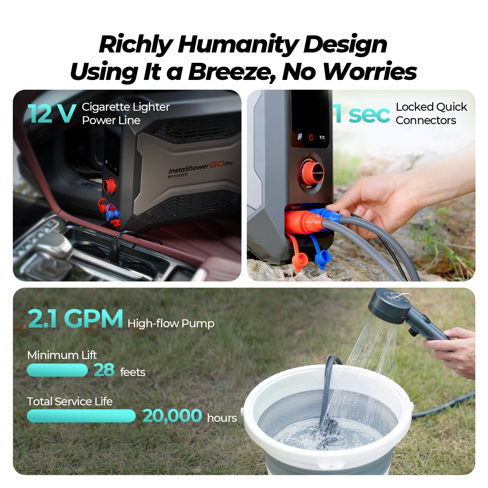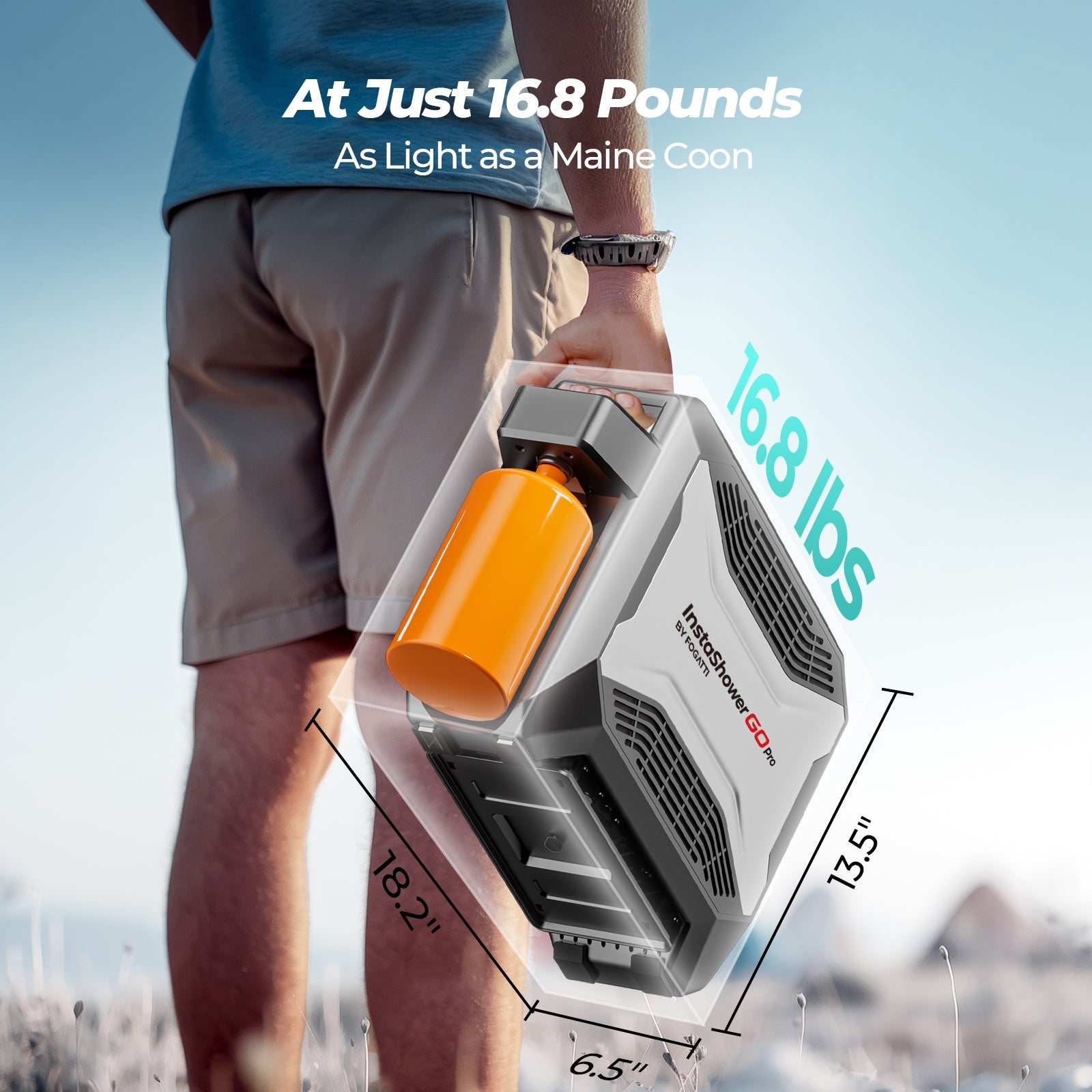 Introducing the Fogatti Protable Water Heater: InstaShower Go Pro, 22,000 BTU