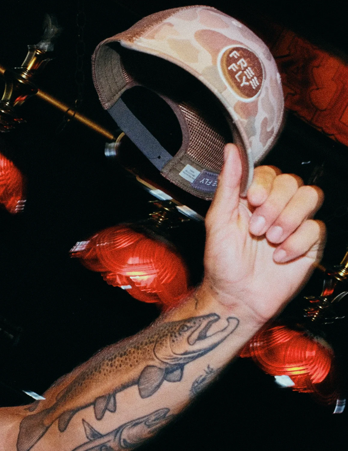 Drift off to hot, sunny days in this classic trucker featuring a camo print inspired by tropical blue waters.
