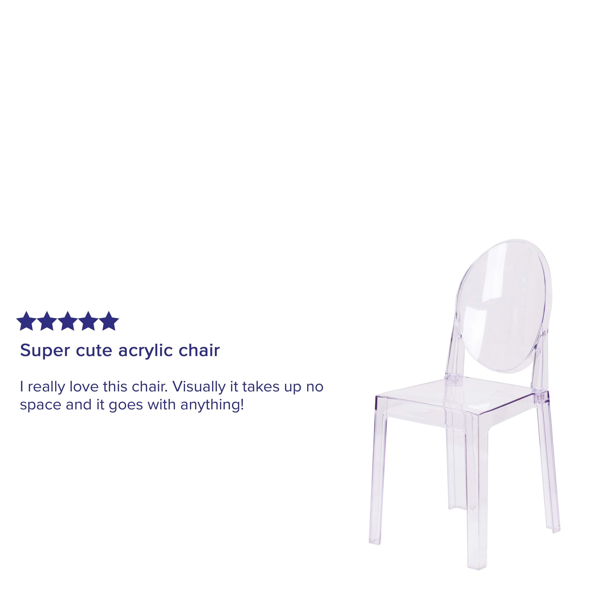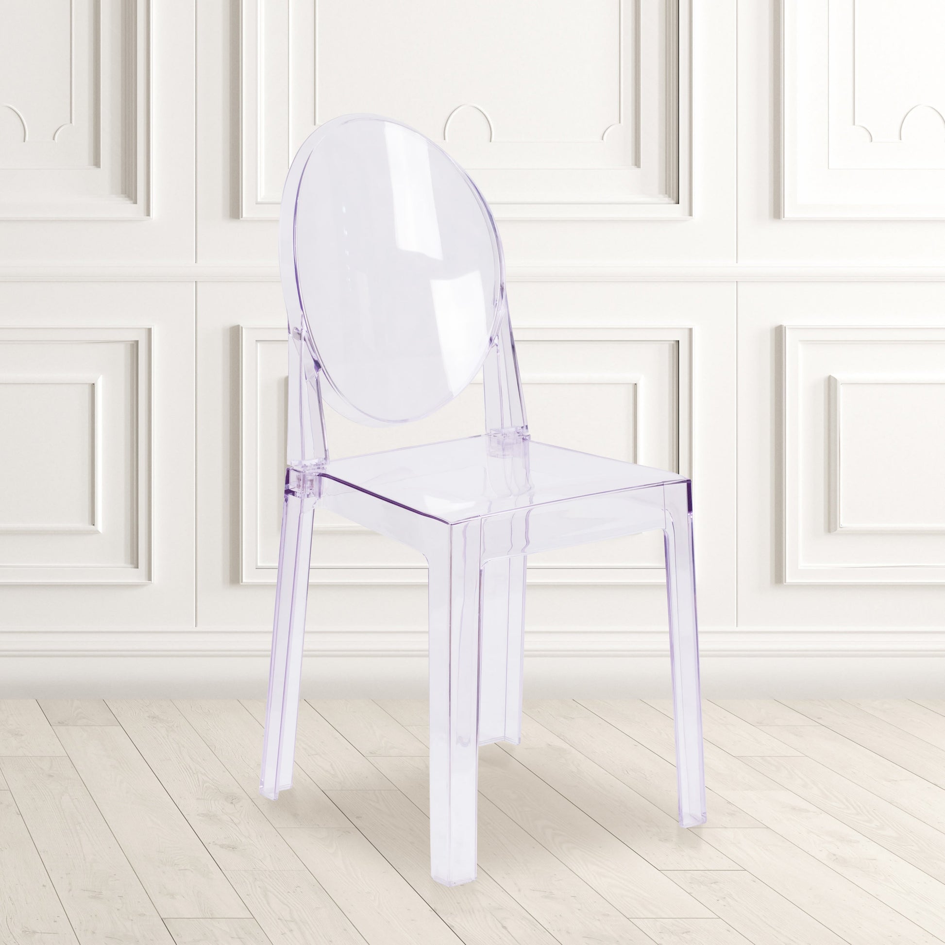 This modern chair with its Louis XVI styling and near invisibility highlights your artwork and other furniture, lightens a crowded space and can make a small room appear larger. A contoured seat makes this chair comfortable and its polycarbonate molded structure makes it shock, scratch and water resistant. Protective floor glides protect your floor by sliding smoothly when you need to move these beautiful chairs.