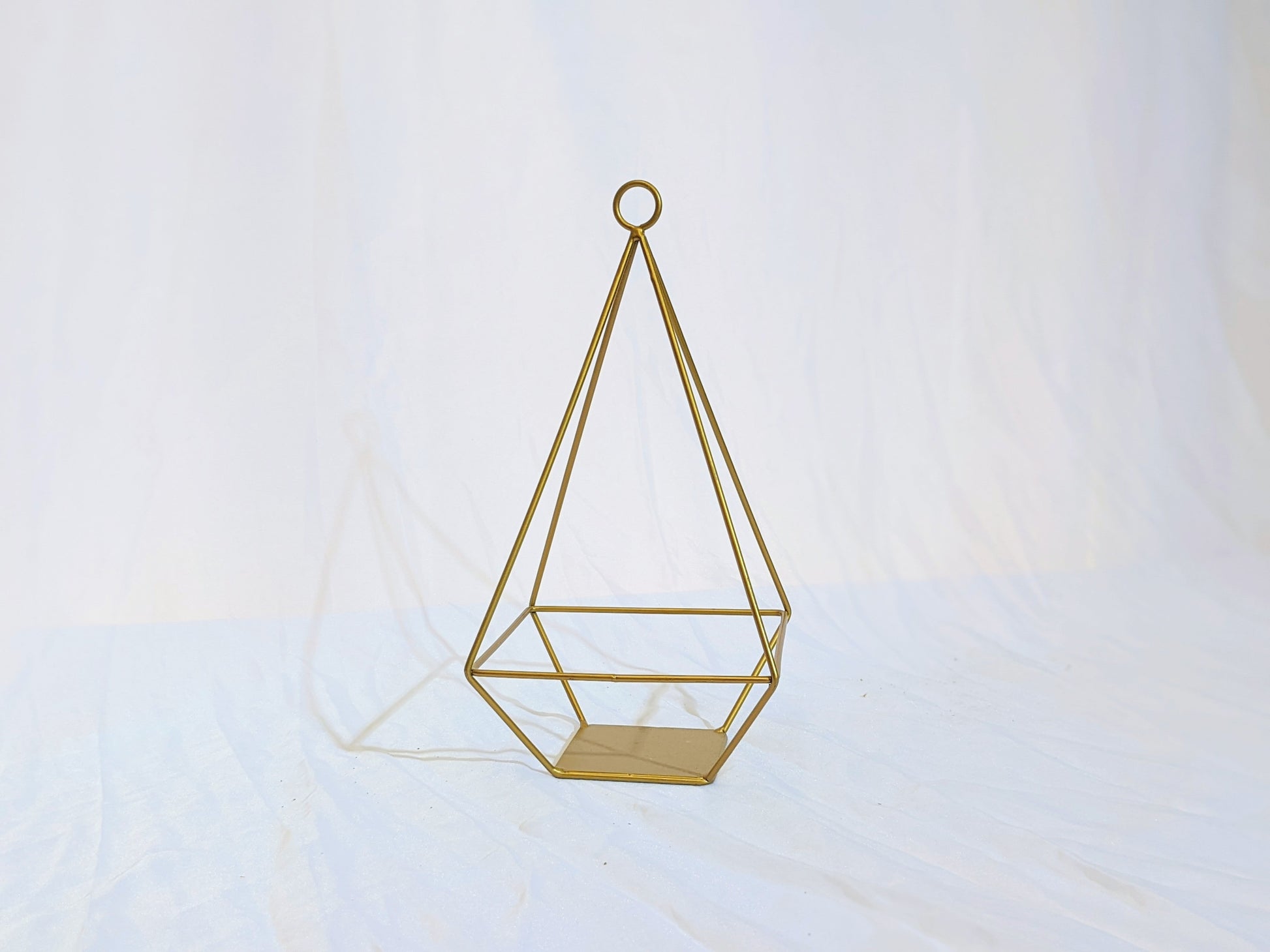 This stunning Gold Geo Diamond Lantern is a trendy Boho style rental for creating the perfect ambiance for weddings, baby showers, or birthday parties. Its gold metal open frame makes it great for filling with flowers to use as an aisle marker or cocktail table centerpiece. Or, just add a lantern for a classic and elegant feel.