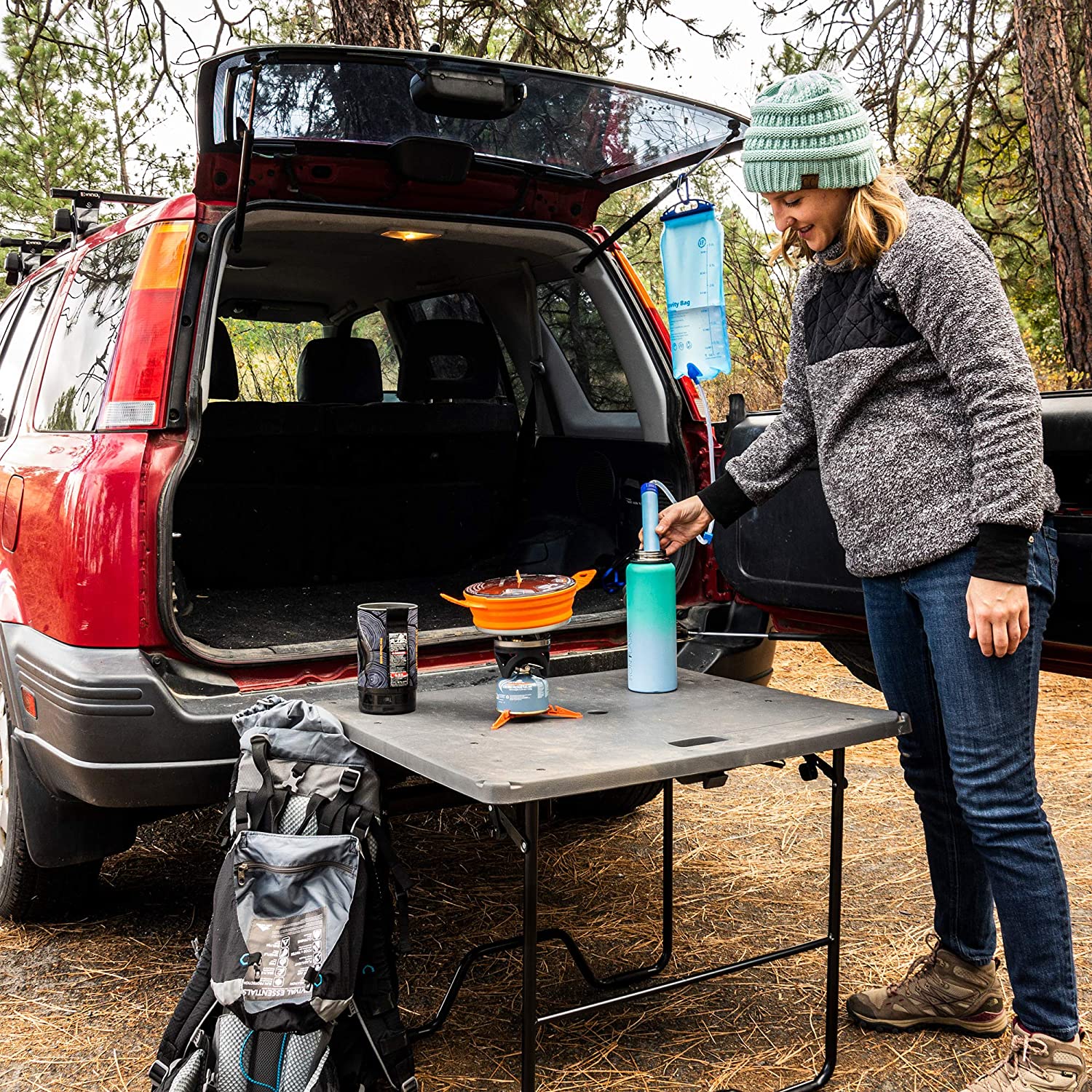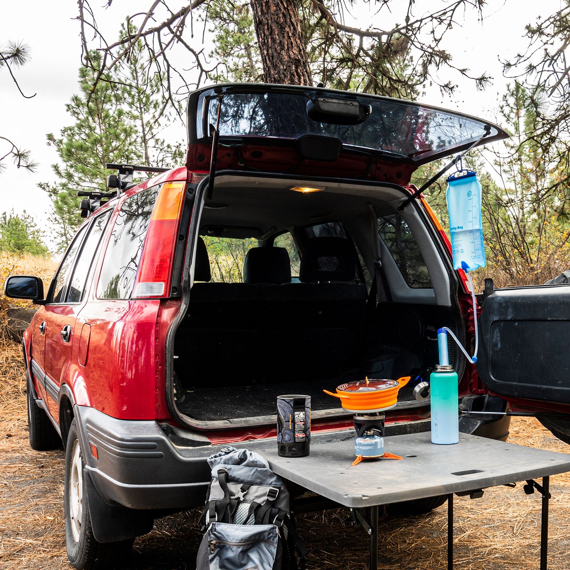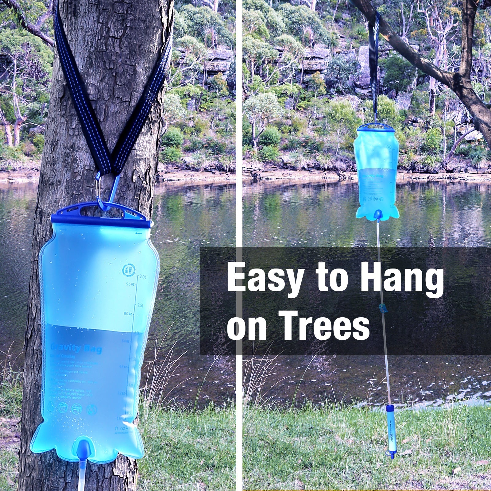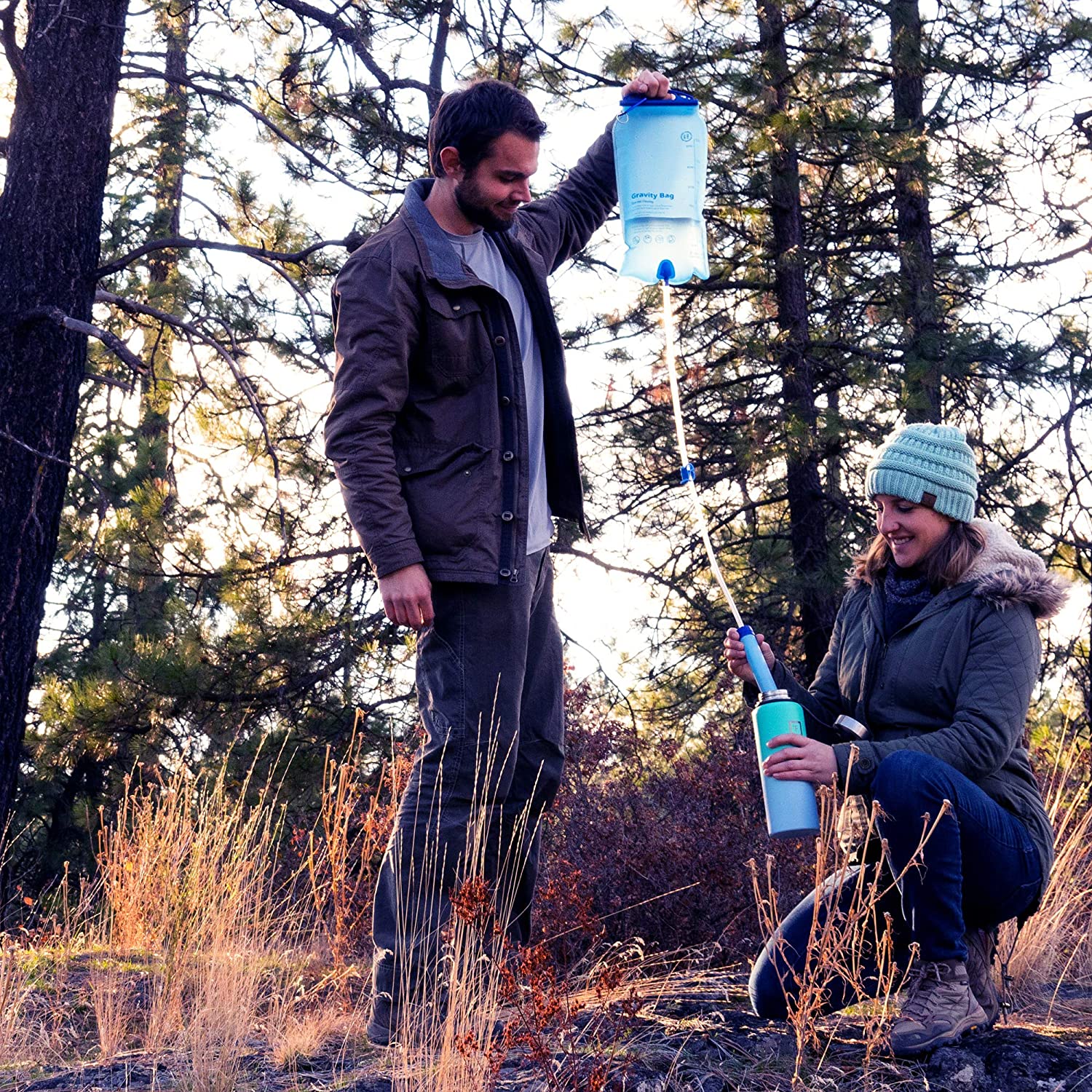 The Gravity Water Filter System has a long lifespan on its filter and is great for group use while camping & hiking.