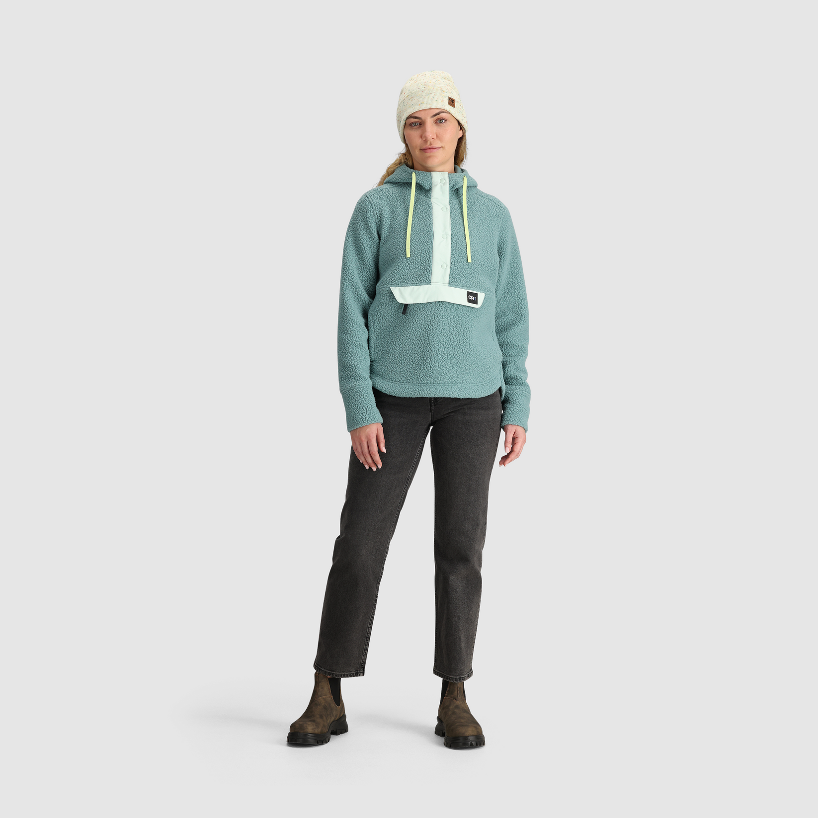 The Grayland Fleece Pullover Hoodie features classic hoodie styling and recycled materials to create a cozy, warm sherpa fleece, perfect for casual wear around town or traveling to the next adventure.