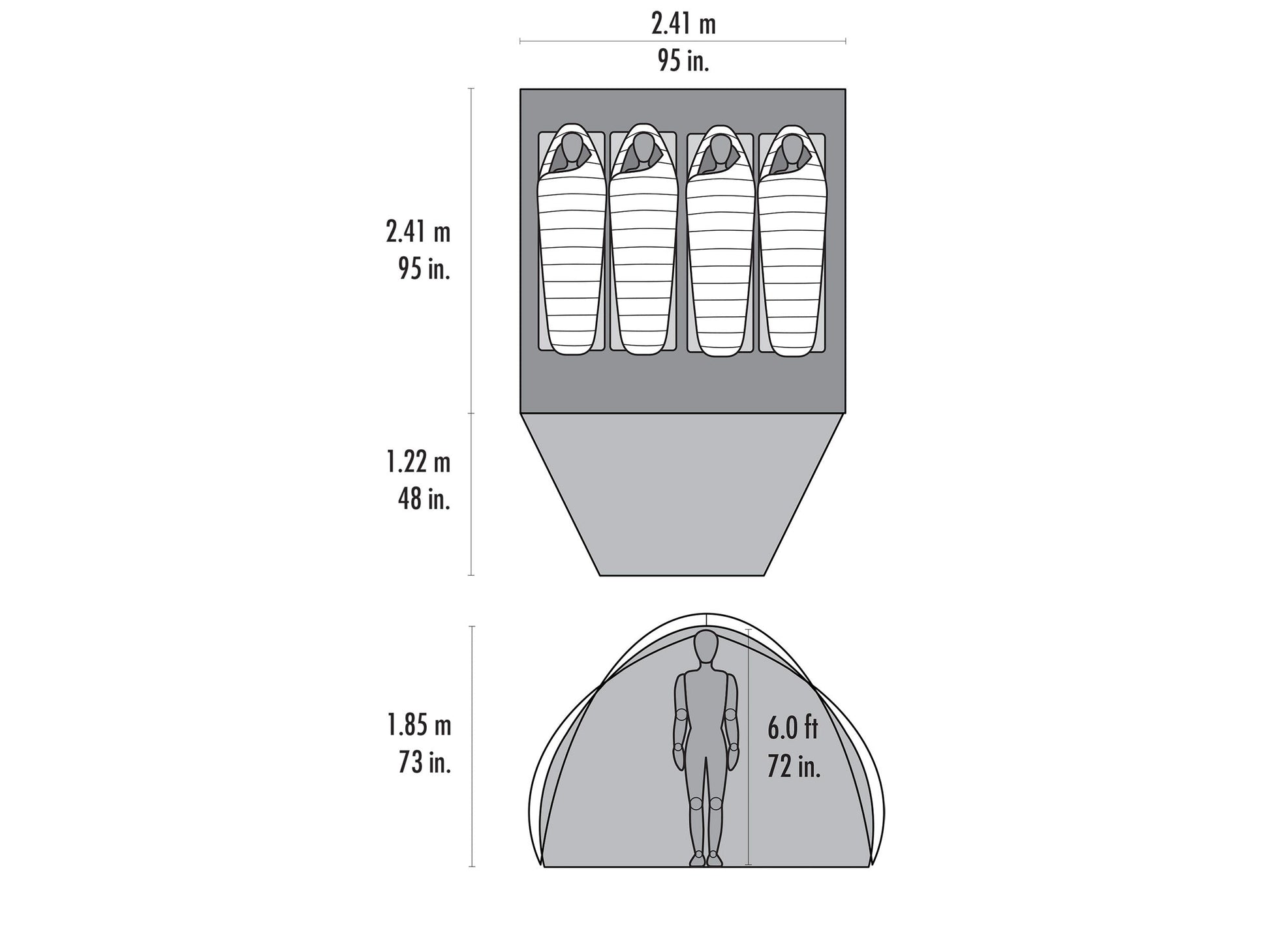 Strong, standing-height, spacious shelter for adventurous families and groups of 4.