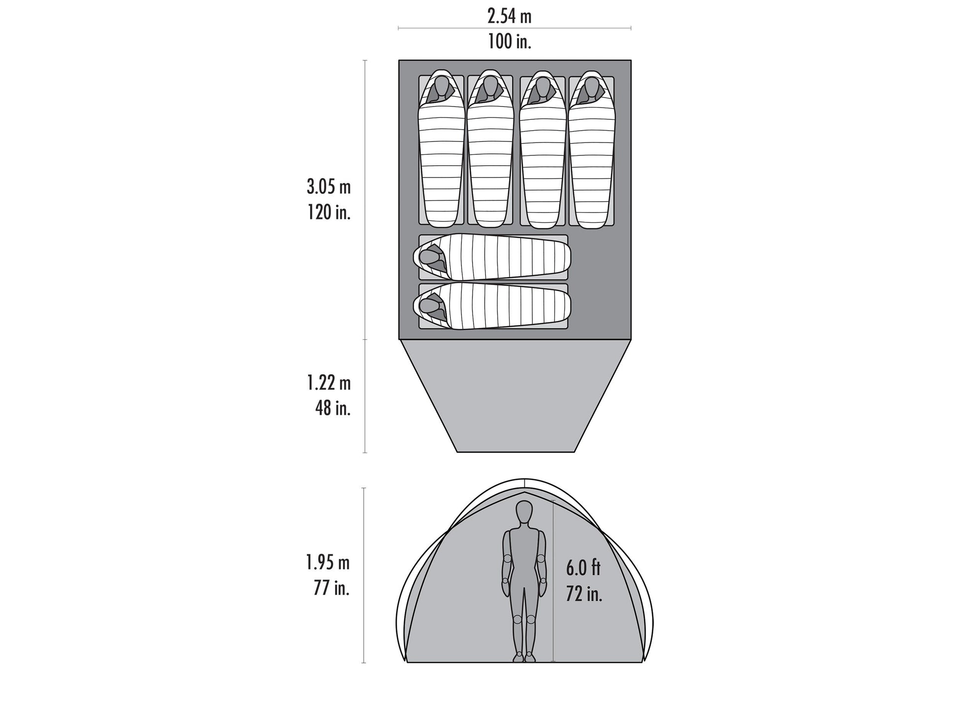 Strong, standing-height, spacious shelter with room to comfortably sleep 6.