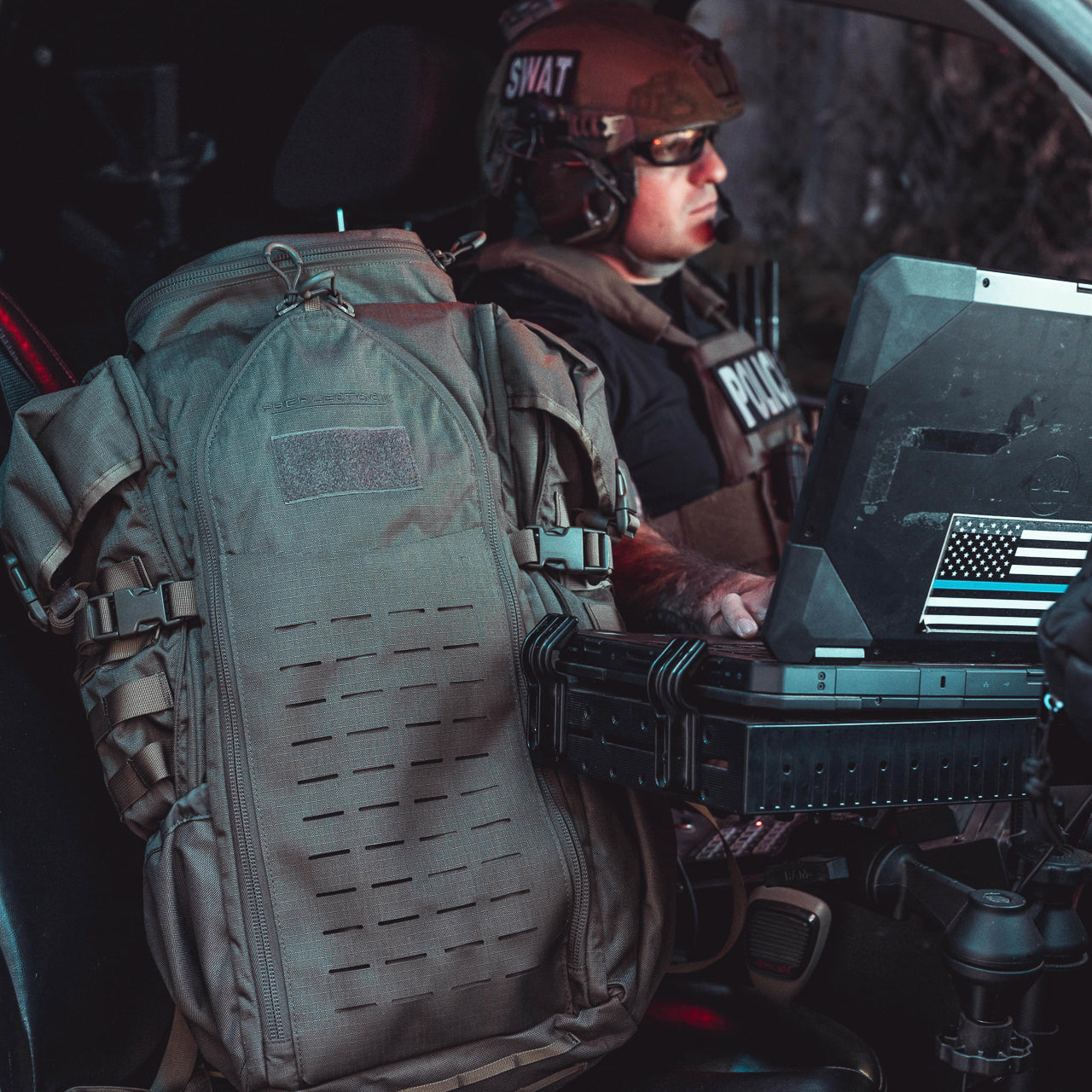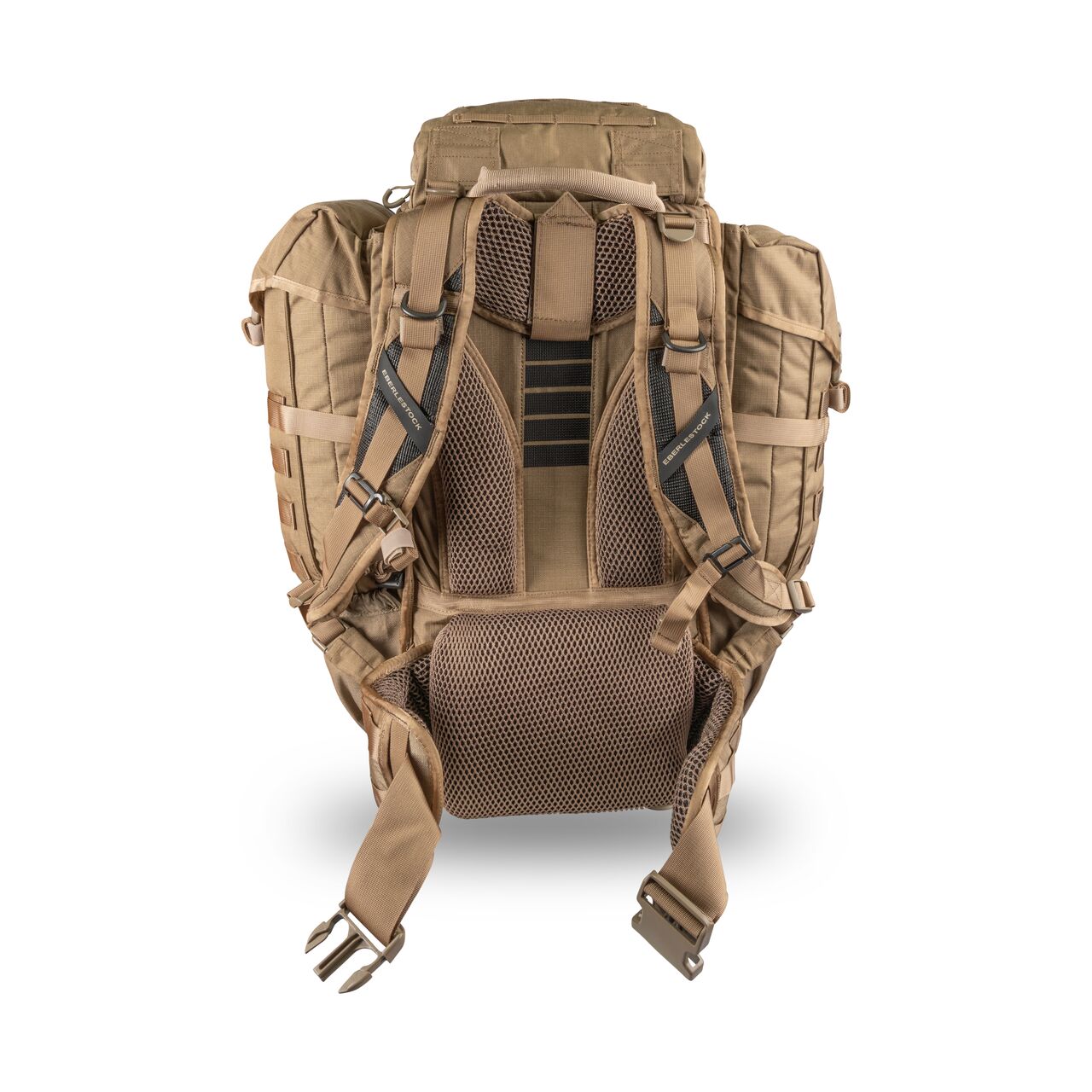 At 2600 cubic inches, the Halftrack™ makes for a great 3-day pack with a large main compartment for all of your essentials. The Halftrack features a zippered hood pocket and a large front or top opening main compartment, optimized for carrying PRC-117 type radios. The two large exterior side pockets are great for two 3-liter hydration bladders or tripods and MOLLE webbing around the pack gives you the ability to add any pouches and accessories you might need. An included and stowable rain fly keeps the elements out and your gear dry.
