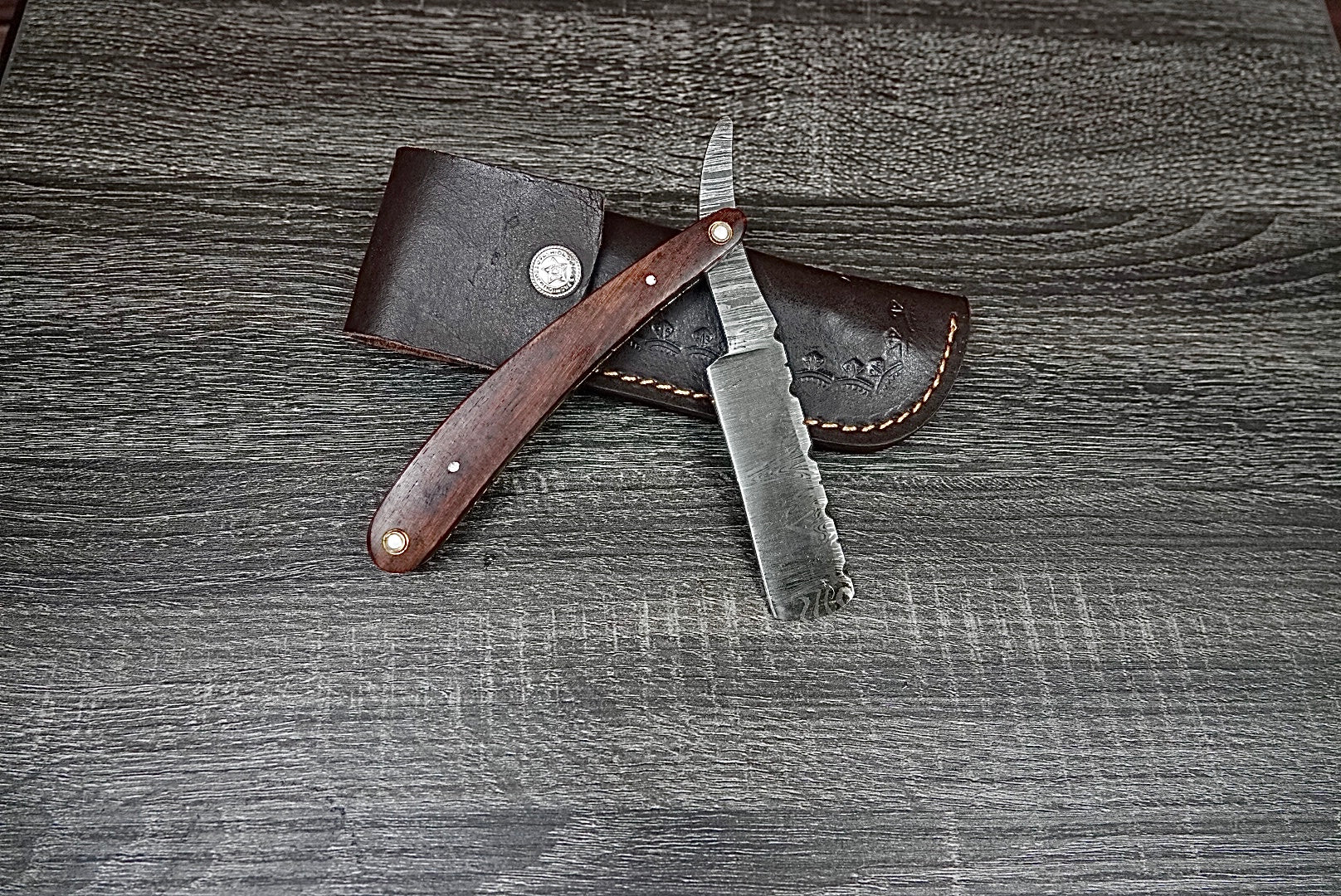 Hand Crafted Razor Knife Twist Damascus Walnut Wood Outdoor Razor Sharp