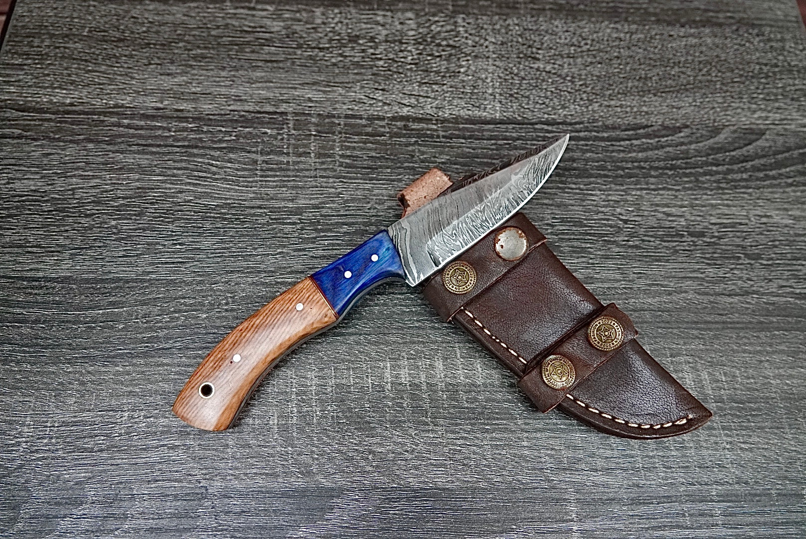 Expertly crafted for precision and durability, the Handmade Skinner Knife is a must-have for any hunter or outdoors enthusiast. With a stunning Fire Damascus blade, Olive Wood handle, and Wooden Bolster, this knife combines form and function for a superior cutting experience. Perfect for skinning and other tasks, this knife is a valuable addition to any collection.