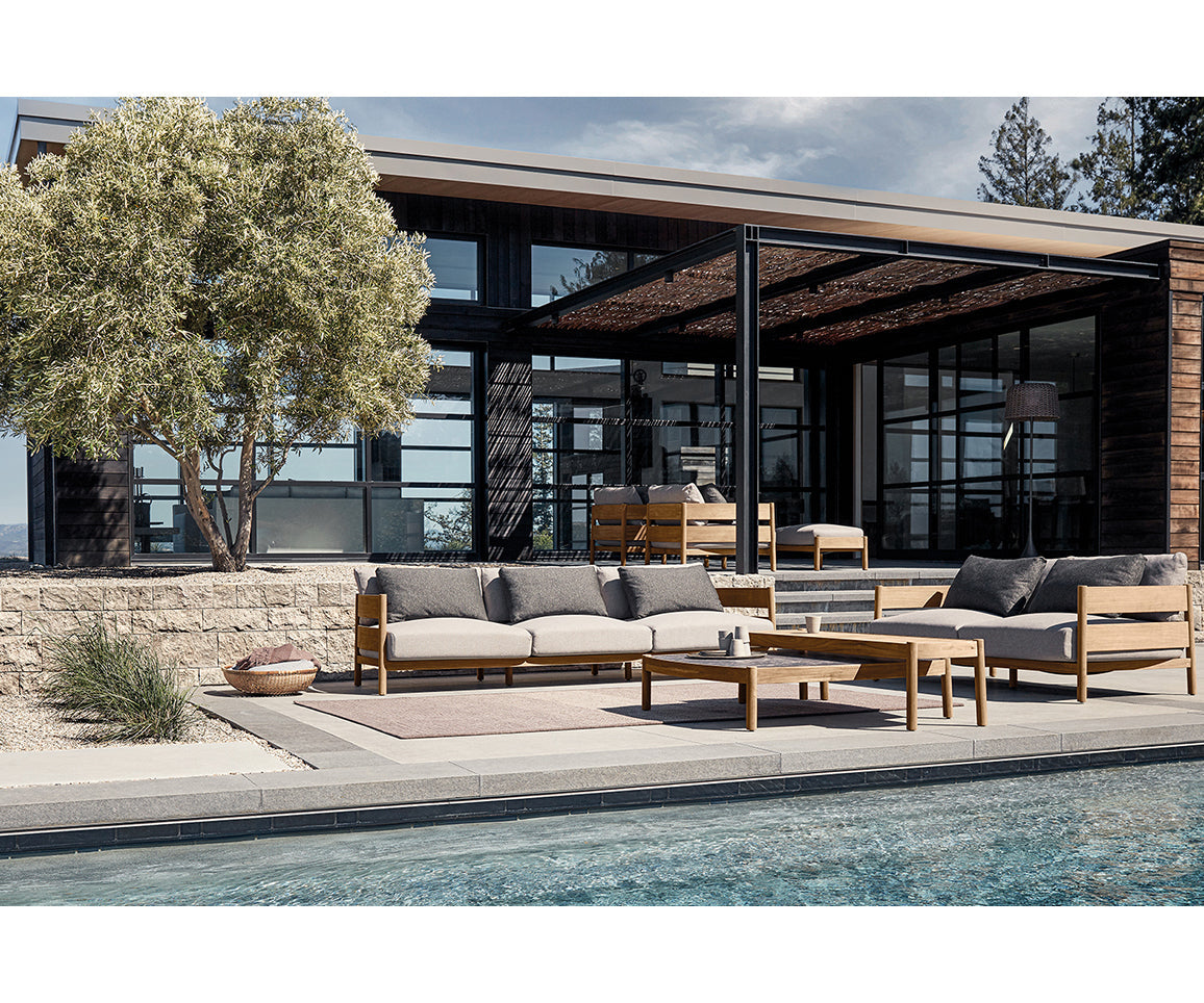 Designed with a nod to the nautical, Haven combines solid teak frames with deep and luxurious seat cushions and back pillows. The subtle, rounded back and side panels are designed to envelop and enclose the occupant, creating a warm and welcoming environment in which to relax.
