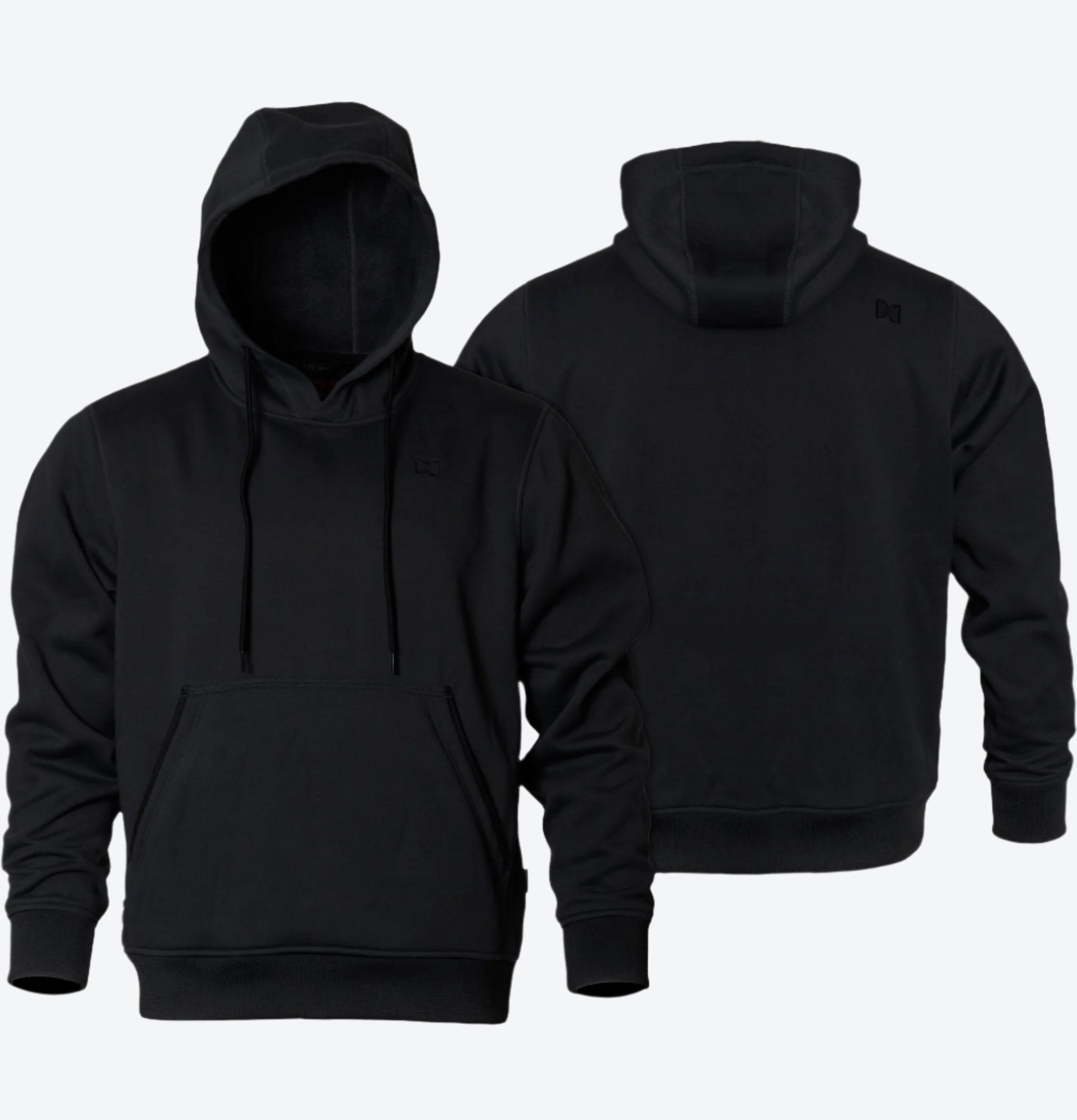temperature as conditions change, extending heat for up to 10 hours between charges. Made from heavy weight polyester fabric with a moisture mesh wicking liner, contour hood with heavy duty drawcord and ribbed cuffs and waist. We took a classic hoodie design and made it the best hoodie on the block. You'll be the envy of the group, and the warmest!