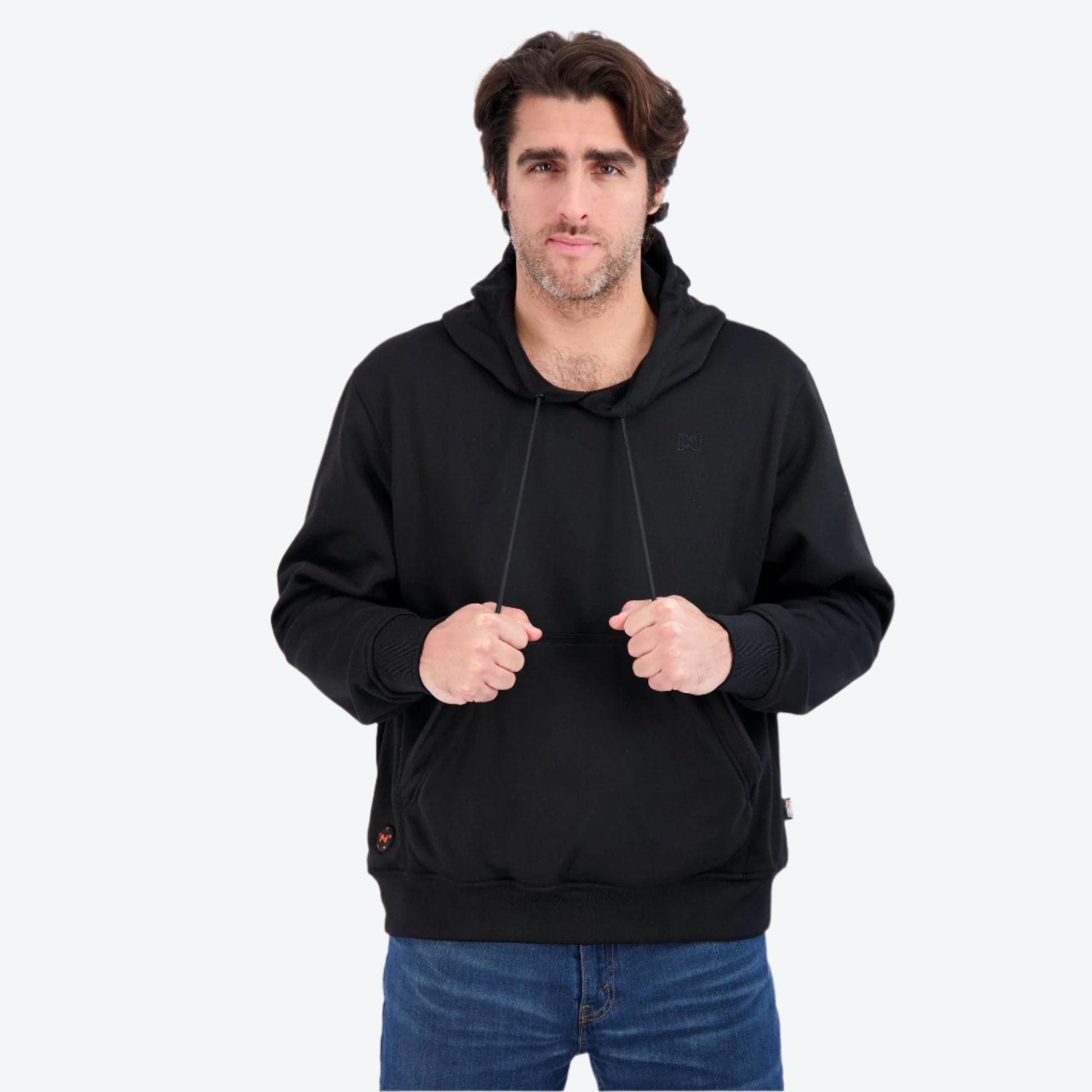 The Mobile Warming® Heated Pullover Hoodie is a classic pullover hoodie with a revolutionary kangeroo HEATED front pocket, eliminating the need for gloves so that your hands are ready to go when they are needed the most. Fleece lined with elastic openings keeps the elements out and the heat in. Made from durable polyester outershell with a moisture wicking mesh liner and Powered by our 7.4volt Mobile Warming Heated 4-zone heating system, providing heat to the chest, upper back, and the front and back side of the kangeroo pocket. The integrated touch control button allows you to adjust