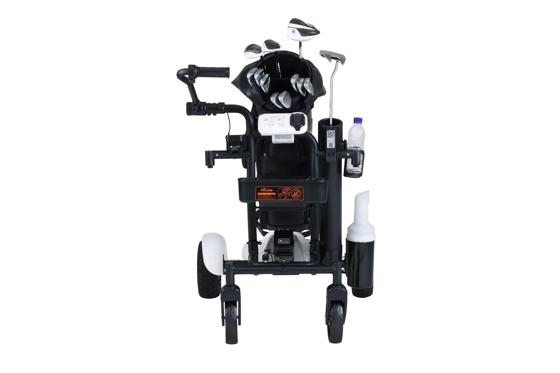 HelloCaddy is an autonomous robo trolley that effortlessly carries your golf bag and follows you around the course without needing manual control. It offers the unique experience of having a personal caddy, enhancing your game with ease and convenience.