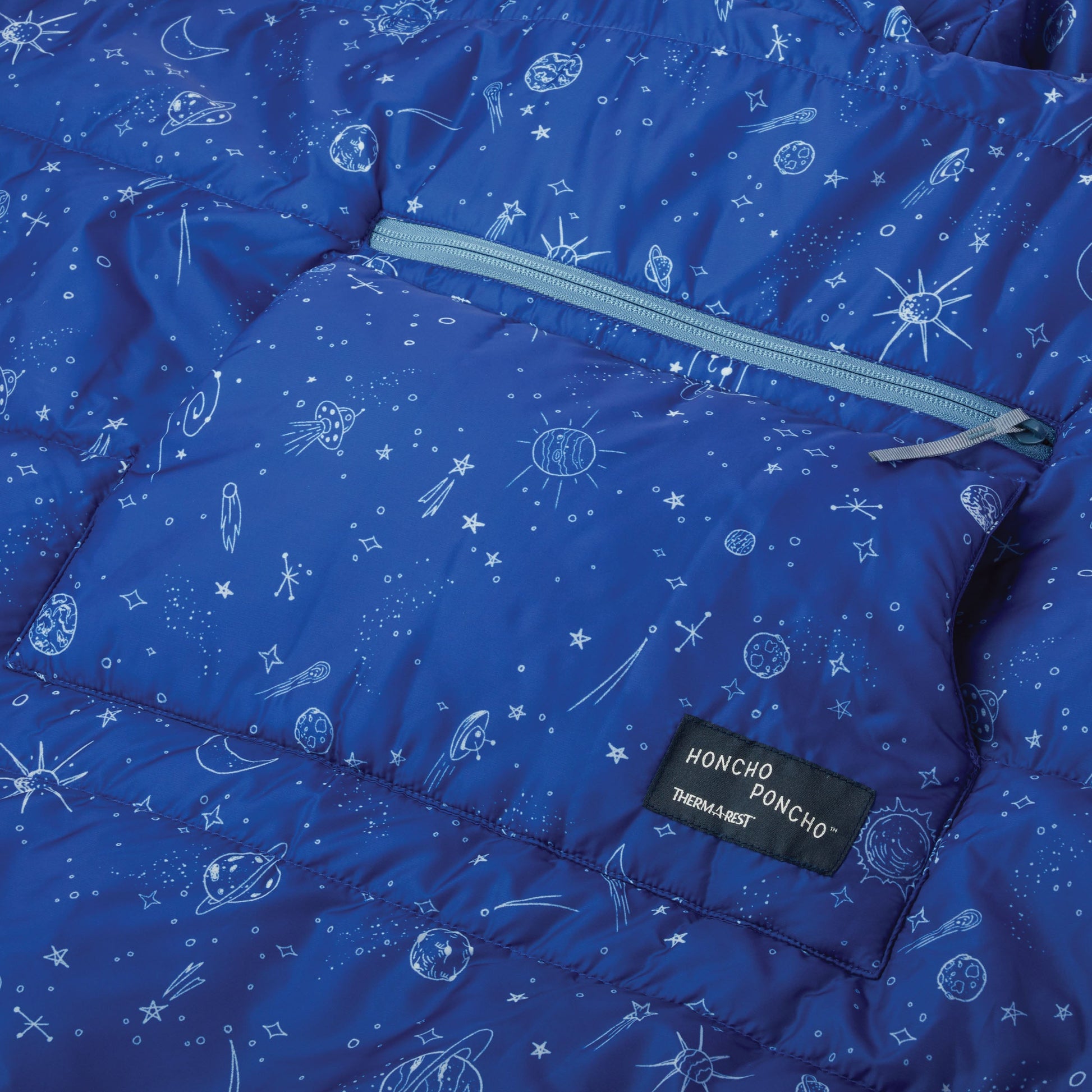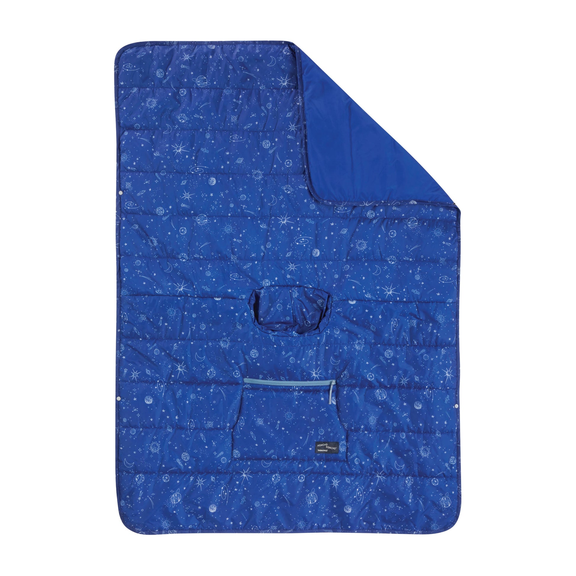 Insulated, water-resistant and packable kids’ poncho and blanket in one.