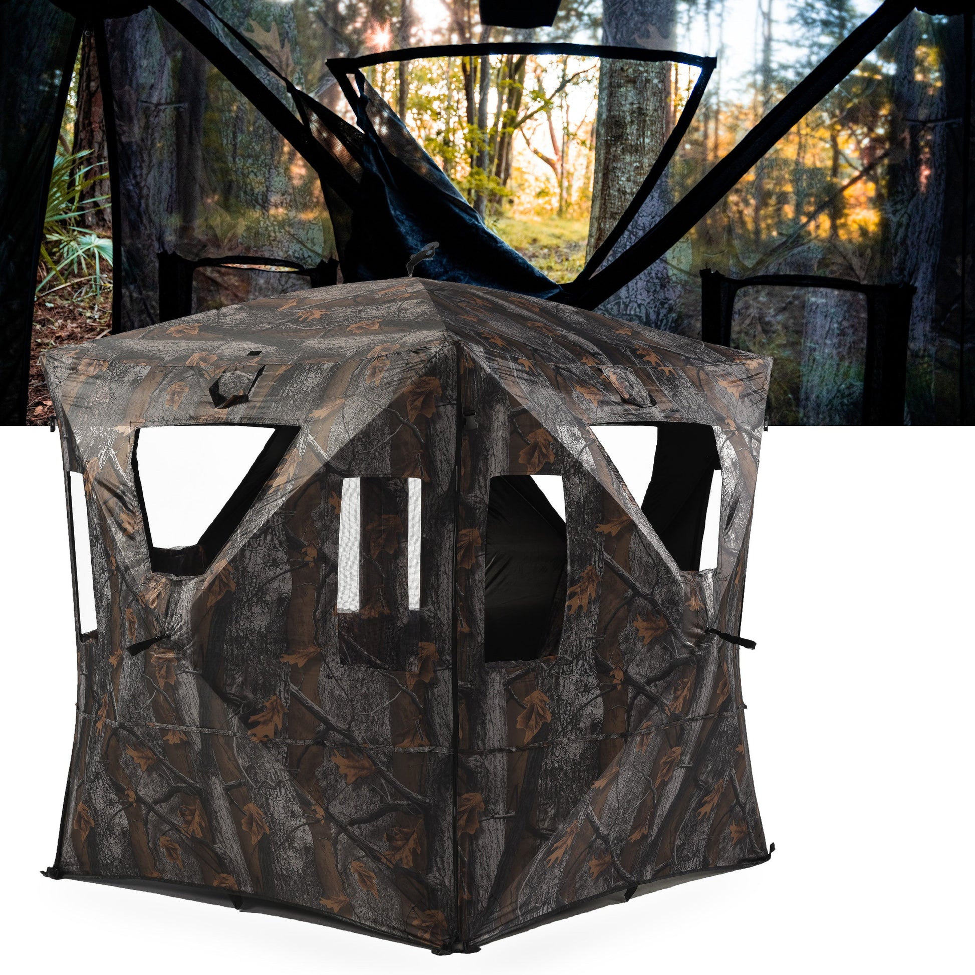 - DURABLE & STURDY: The hub style ground blind provides maximum durability and sturdiness without compromising portability. Leave staked-down at your favorite deer, duck, turkey, or hunting spot, or pack and go. This versatile deer blind takes seconds to deploy and will keep you and a friend or two undetected and ready to strike.