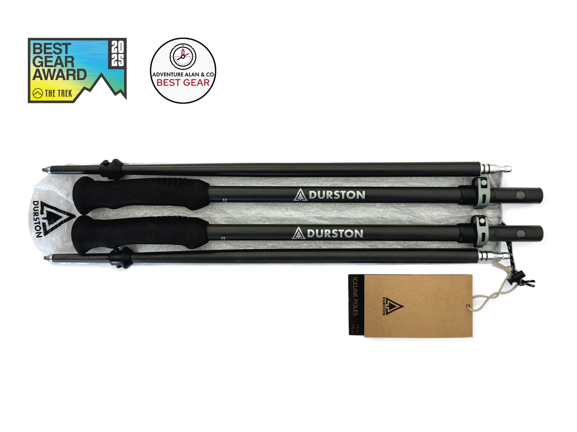 The Iceline poles use a unique weight efficient design to create a premium trekking pole that is lighter, stronger, and more reliable. They offer the compactness of a 3 piece pole and the reliability of an external adjuster, while shaving unnecessary weight to create a pole that is remarkable study yet weighs just 134 g (4.7oz) - making them the world's lightest adjustable 3 piece trekking poles.