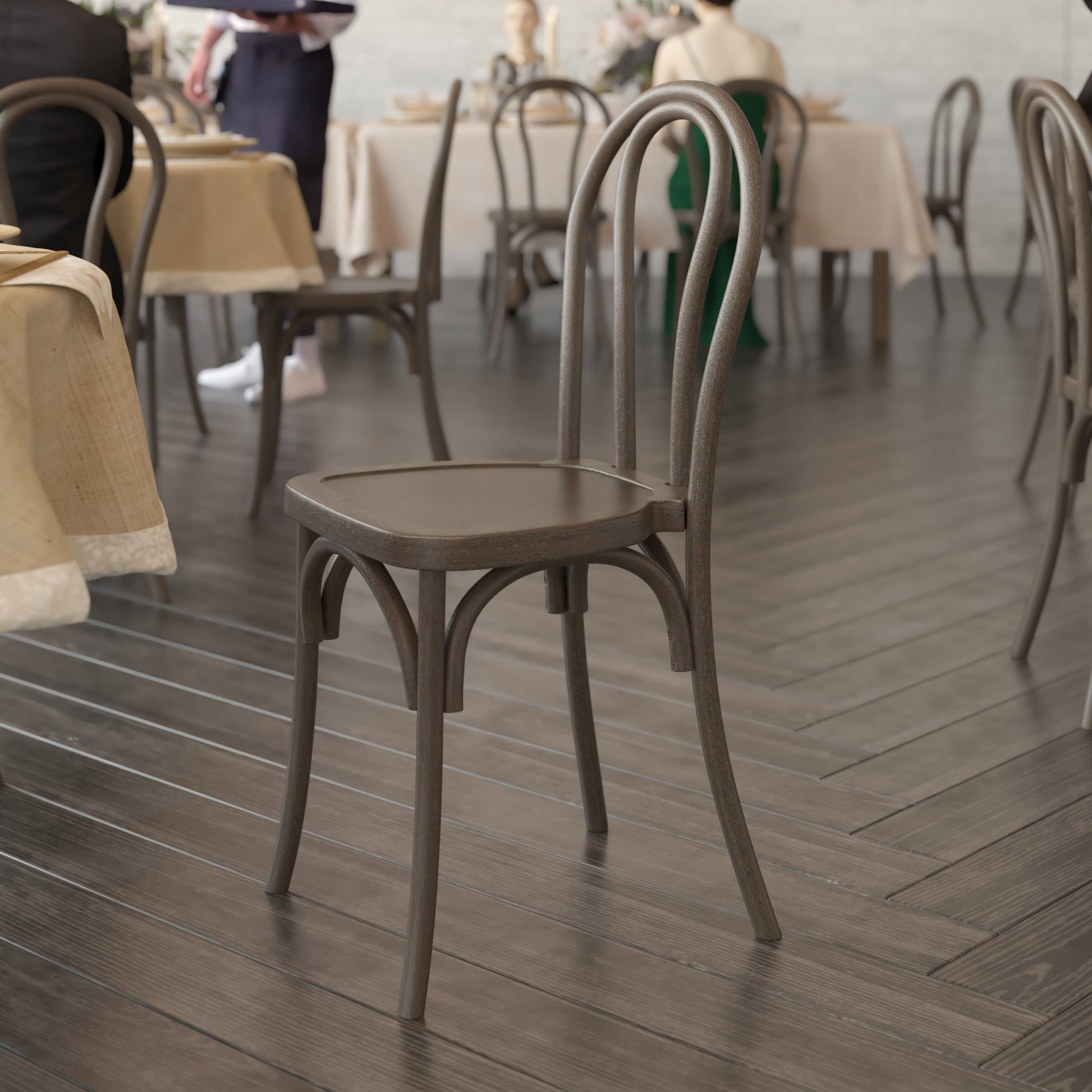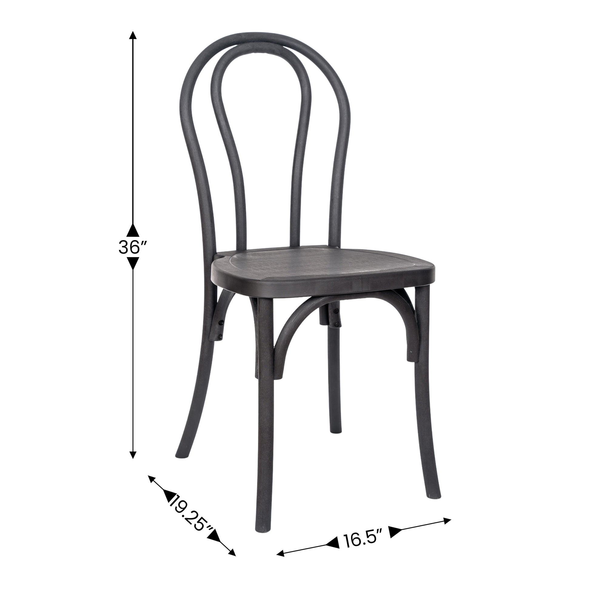 Would you rather add comfort or classic style to your space? There is no need to choose when you have this indoor/outdoor Thonet style chair. Perfect for use around the home in your kitchen, dining room, sunroom, or garden, or on your patio, porch, or deck, this chair is also graded for commercial use, making it the ideal addition to your business. Impress your customers and add a welcoming, calm style to your restaurant, bar, bistro, café, lounge, hotel, or any other high-traffic establishment where providing a top-tier experience is paramount. Plus, this stylish chair features a weather-resistant design that can be utilized indoors and outdoors, allowing for year-round versatile use for casual get-togethers in the backyard, a la fresca dining at your restaurant, or outdoor events like weddings, picnics, and barbecues. Enjoy a cozy, classic design thanks to a resin construction that boasts the look of real wood but is much more durable and eliminates the need for constant, tedious upkeep to prevent fading and structural breakdown. While this chair is lightweight in nature, it also offers a robust build engineered to hold up to 1,000 lbs. static weight. Business owners that prioritize quick, easy turnover will be pleased to know that cleanup is fast and simple by simply wiping clean with a dry cloth, water, and foam cleanser. And for additional convenience, this chair arrives preassembled. Combine style and comfort your guests will love with durability and easy care that you will appreciate with this commercial Thonet chair.