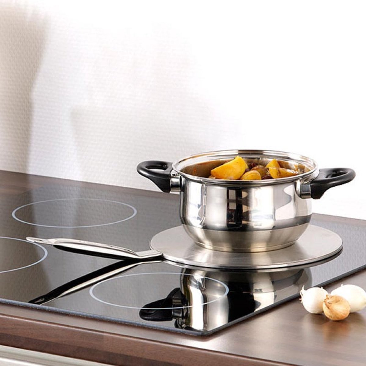 - Veelzijdig: Of je nu kookt met stalen, glazen, keramische of koperen pannen, deze adapter is geschikt voor verschillende soorten kookgerei.