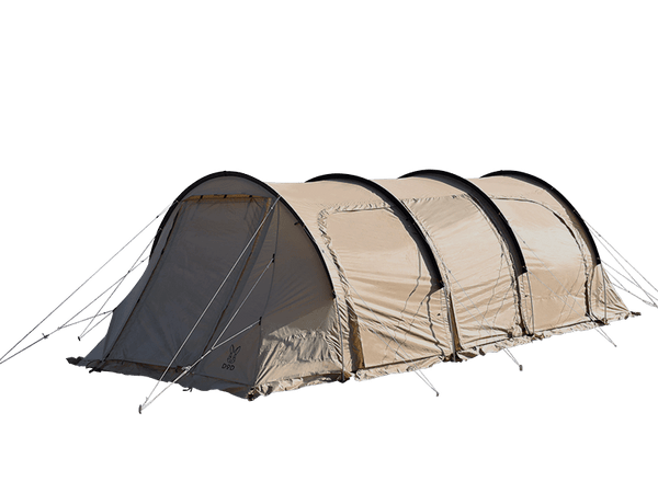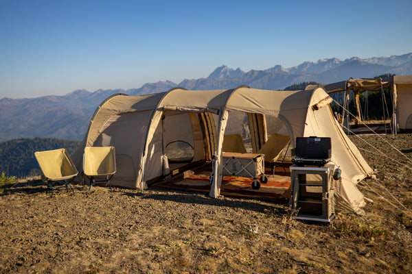 Bring the whole family with our huge Kama Family package. The Kamaboko medium, with a 210 sqft footprint, converts from a massive sun shelter during the day, to a lounging area in the evening, to a sleeping area at night. Sleeping space in this configuration for up to 5 adults comfortably. Add an extra sleeping chamber, sold separately, to sleep up to 10. Two large Soto pads fit perfectly in the inner tents to give you a great night's sleep, almost as comfortable as your bed at home. Sugoi chairs provide seating for 4. A wagon gets all your gear from the car to the campsite, then doubles as a table.
