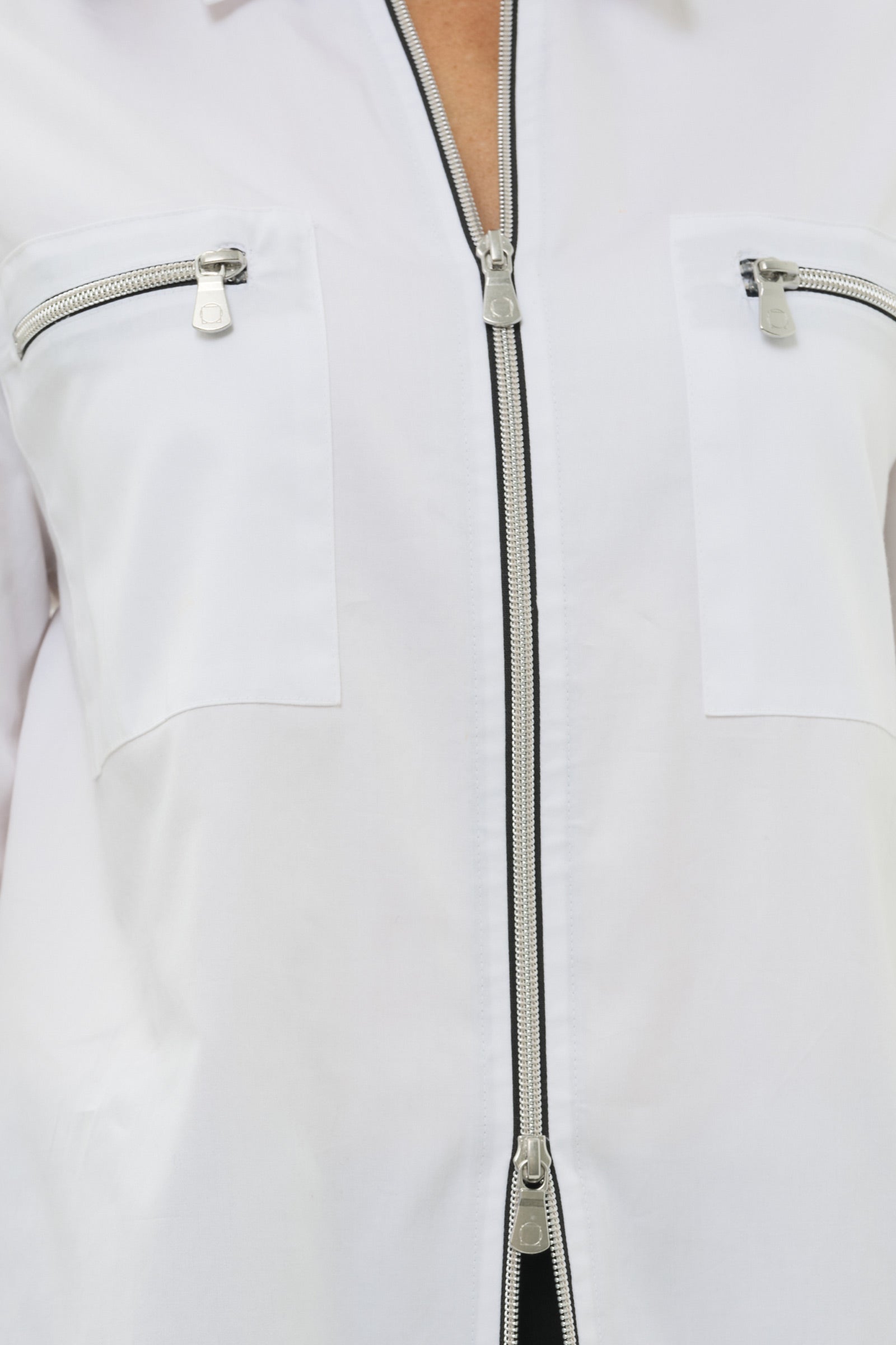 Introducing Kari, the perfect addition to your wardrobe. This oversized shirt can be worn open as a lightweight jacket or zipped up for a sophisticated look. The black contrast zippers add a touch of elevated style. Made from crisp poplin, Kari is sure to become your go-to piece for any occasion.