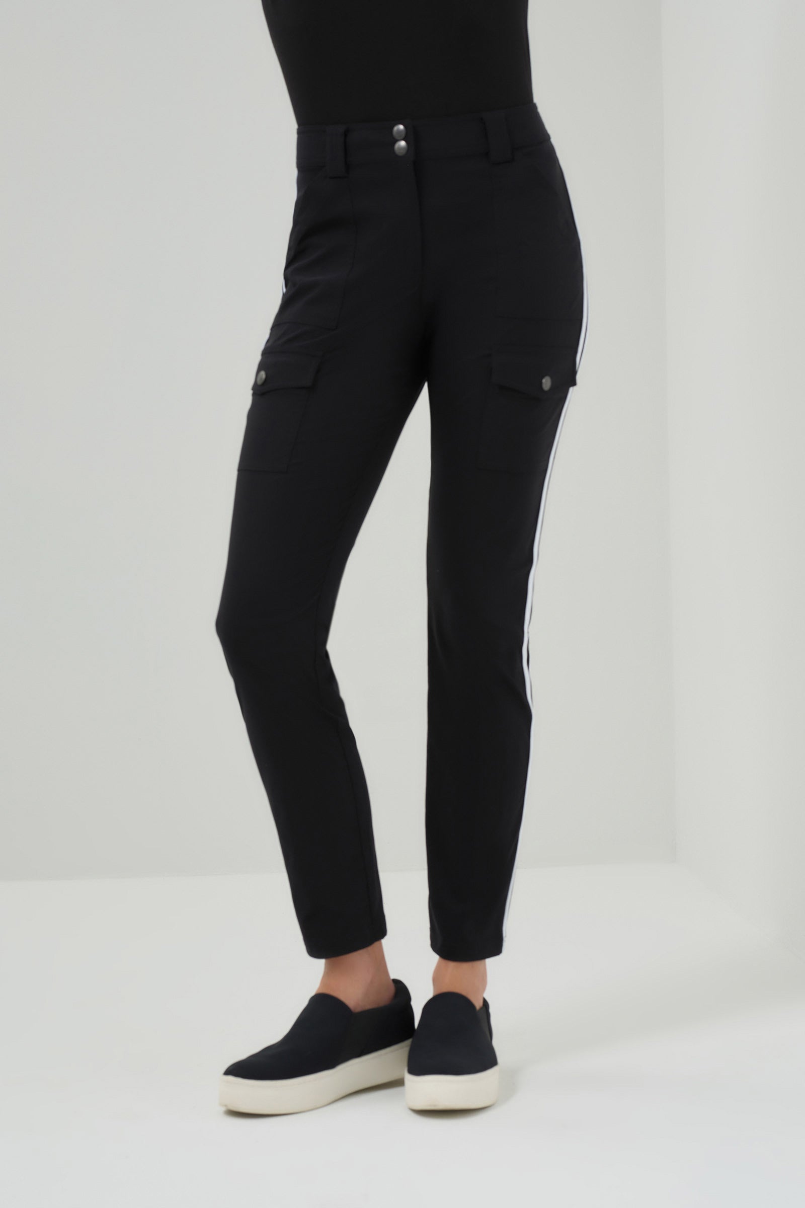 Experience chic European style with all-day comfort in our bestselling travel pants. Crafted from our signature stretch fabric from France, these curve-hugging travel pants feature a contour waistband for unmatched comfort during long flights. Lightweight, wrinkle-resistant, and space-saving, they’re perfect for the modern traveler. The utility pockets at the hip and leg add functionality, while the designer seaming and sleek racing stripe deliver a touch of F1-inspired freshness, elongating your legs and elevating your outfit. Once you try these French stretch travel pants, you’ll want them in every color!