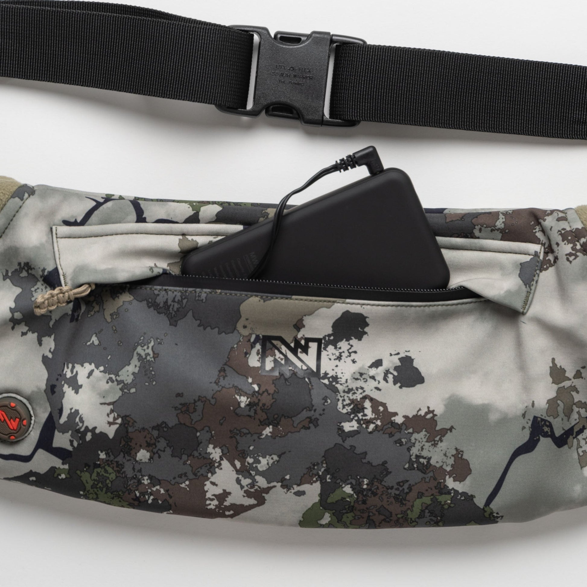 The Mobile Warming KCX Terrain Heated Handwarmer, in King's Camo KC Ultra pattern, is designed for ultimate concealment and convenience, keeping exposed hands warm so they are ready to go when needed most. Fleece lined openings keeps the heat in and the elements out. Adjustable waist strap makes it easy to take on and off. Front zippered pocket is big enough for a cell phone and other items. Powered by the Powersheer XL high-capacity rechargeable lithium-ion battery, and heat coils located on the front and back side provide up to 10 hours of heat between charges. 4 selectable temperature settings so you can control heat as the temperatures change throughout the day. Heat when you need it!