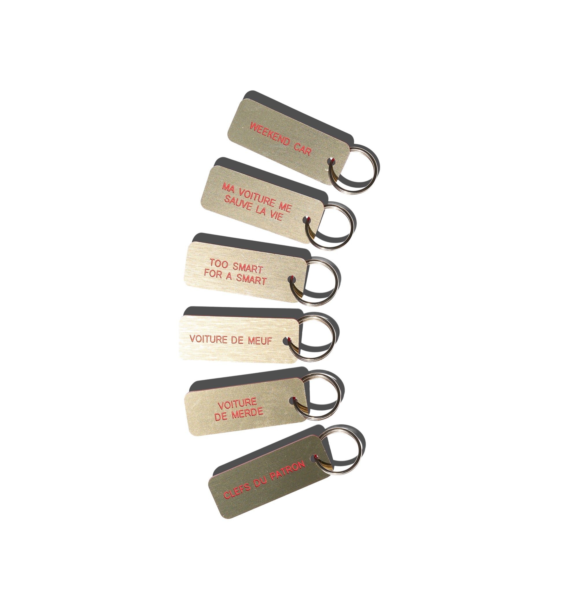 These small rectangle keytags are as tough as your coffee addiction, yet they’ve got the humor to match. Whether you're rocking a "Voiture de Meuf" or declaring "Too Smart for a Smart," they’ve got a message for everyone.