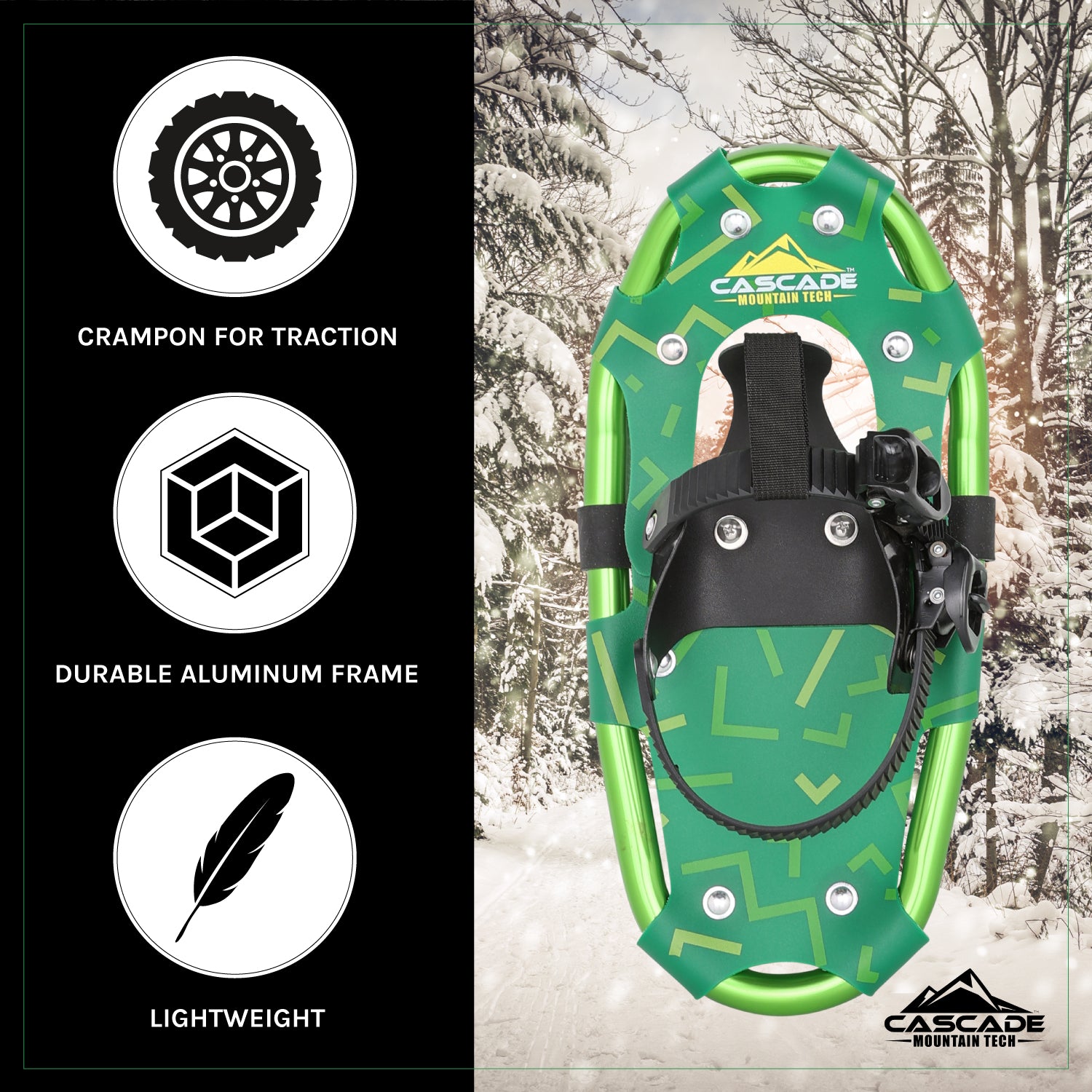 Get your child out and exploring snow-filled trails and valleys with ease and comfort with the Cascade Mountain Tech Lightweight Snowshoes for Kids.