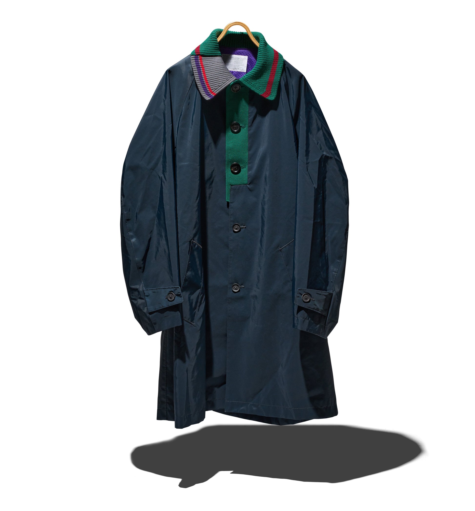 This jacket draws from a lot of traditional clothing pieces like tailor jackets and chesterfield coats, but combined to created a pop garment.