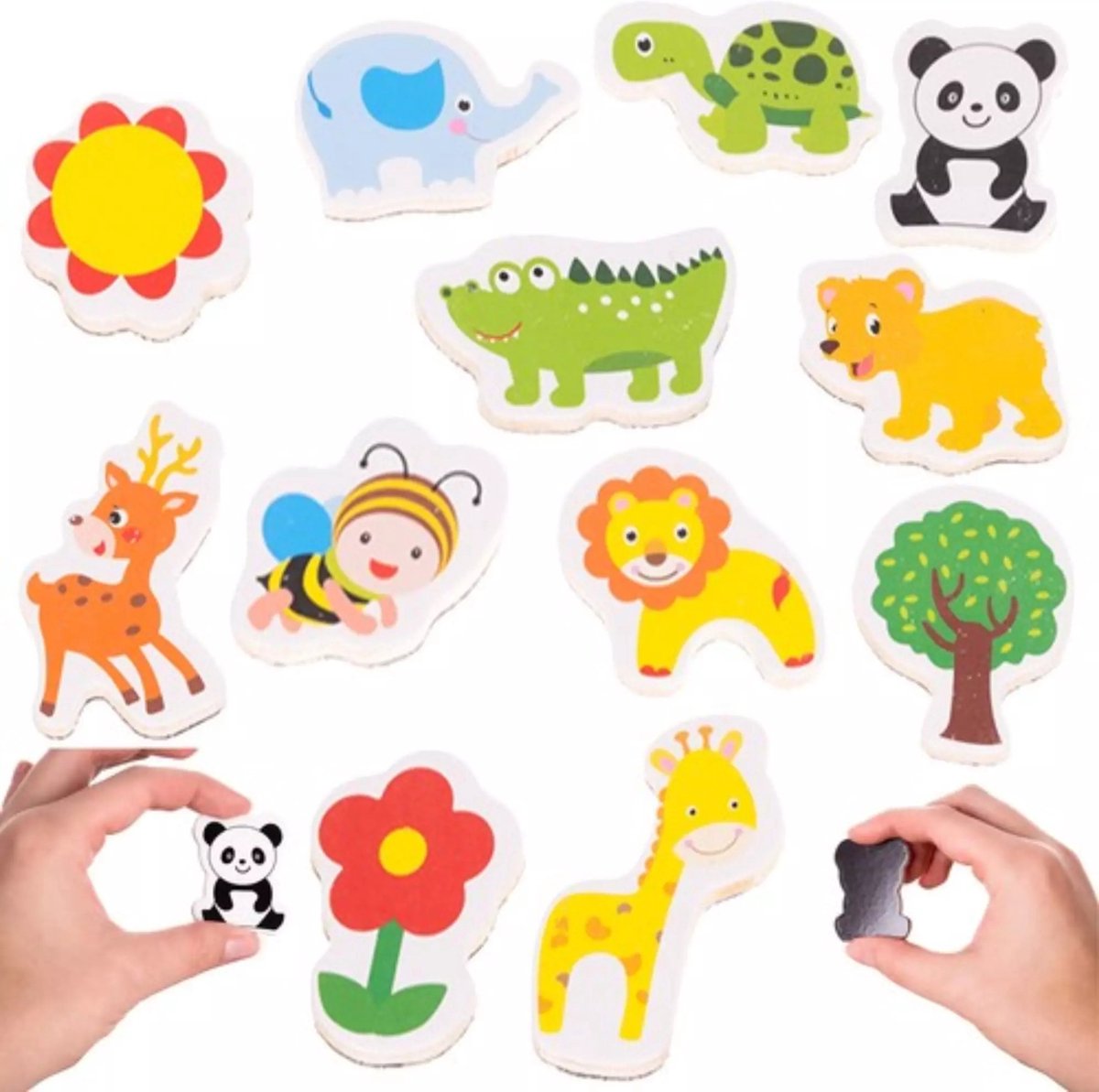 Kruzzel Natuur Magneten Set – 12 Kleurrijke Dierenmagneten voor Koelkast & Educatief Spel