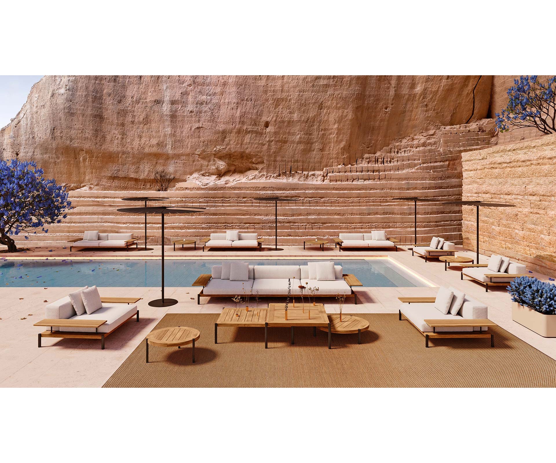 Designed by Francesco Meda and David Quincoces, the LADEMADERA collection is based on a design philosophy that respects the environment and carefully selects its materials. LADEMADERA outdoor furniture combines the purity of teak wood and the versatility of aluminum in an exercise of simplicity and aesthetics with clean lines.