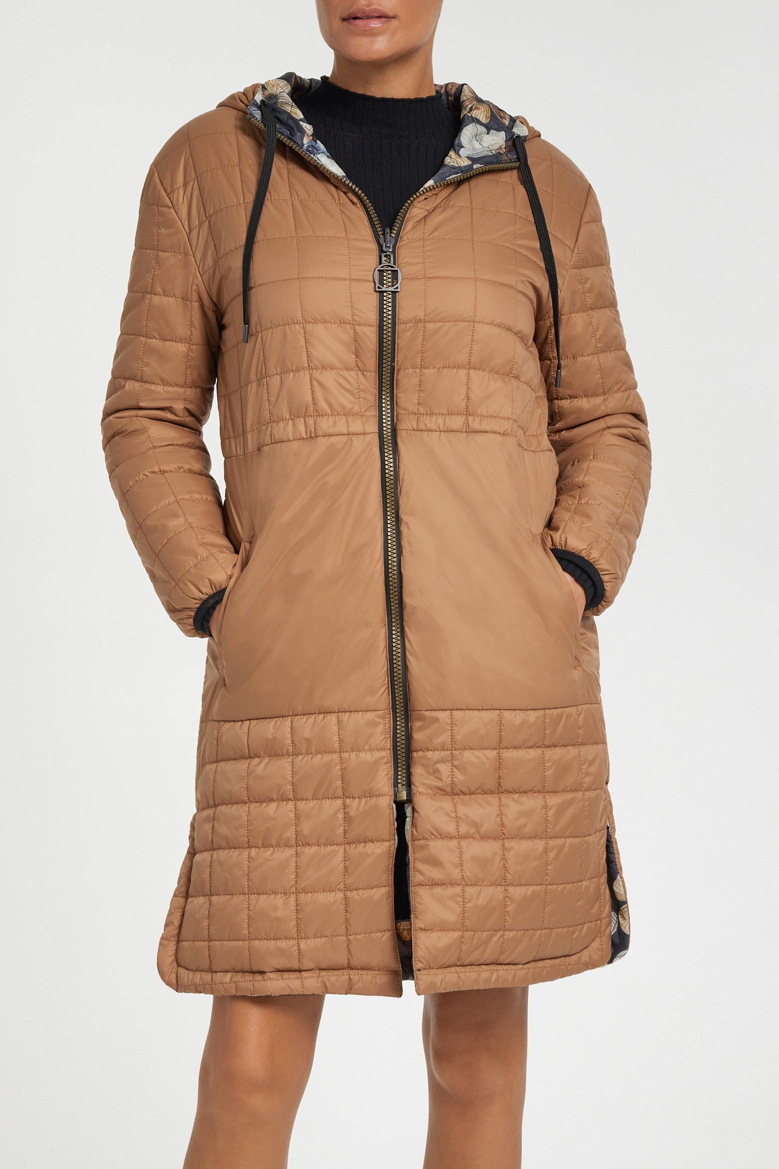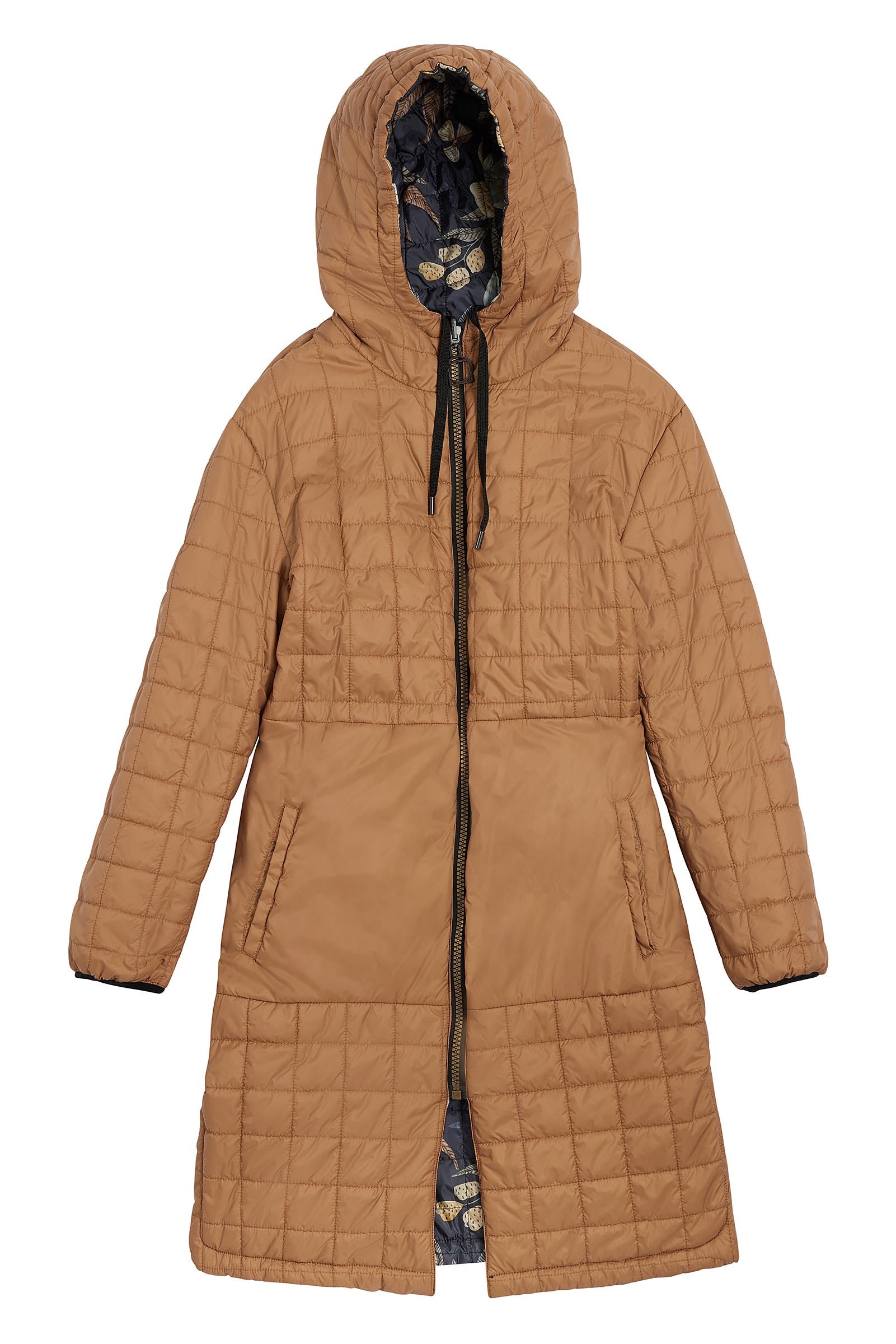 Transform your outdoor style with the Leighton jacket. This relaxed fit, reversible nylon puffer gives two looks in one in our new vintage garden print in subtle shades of brown, beige, and white on a black background on one side and caramel on the other. Features and adjustable elastic waist, zip front, two side slit pockets with antique brass trims.