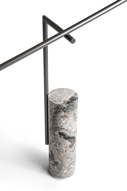 The LIBRA is a floor lamp that well expresses elegance combined with functionality for the light necessity of a room. Its 360° rotating marble base (in Arabescato Orobico, Carrara Gioia, or Nero Marquina), paired with a 240 cm (94.4 in) swinging arm and rotating LED light source, makes it highly versatile.
