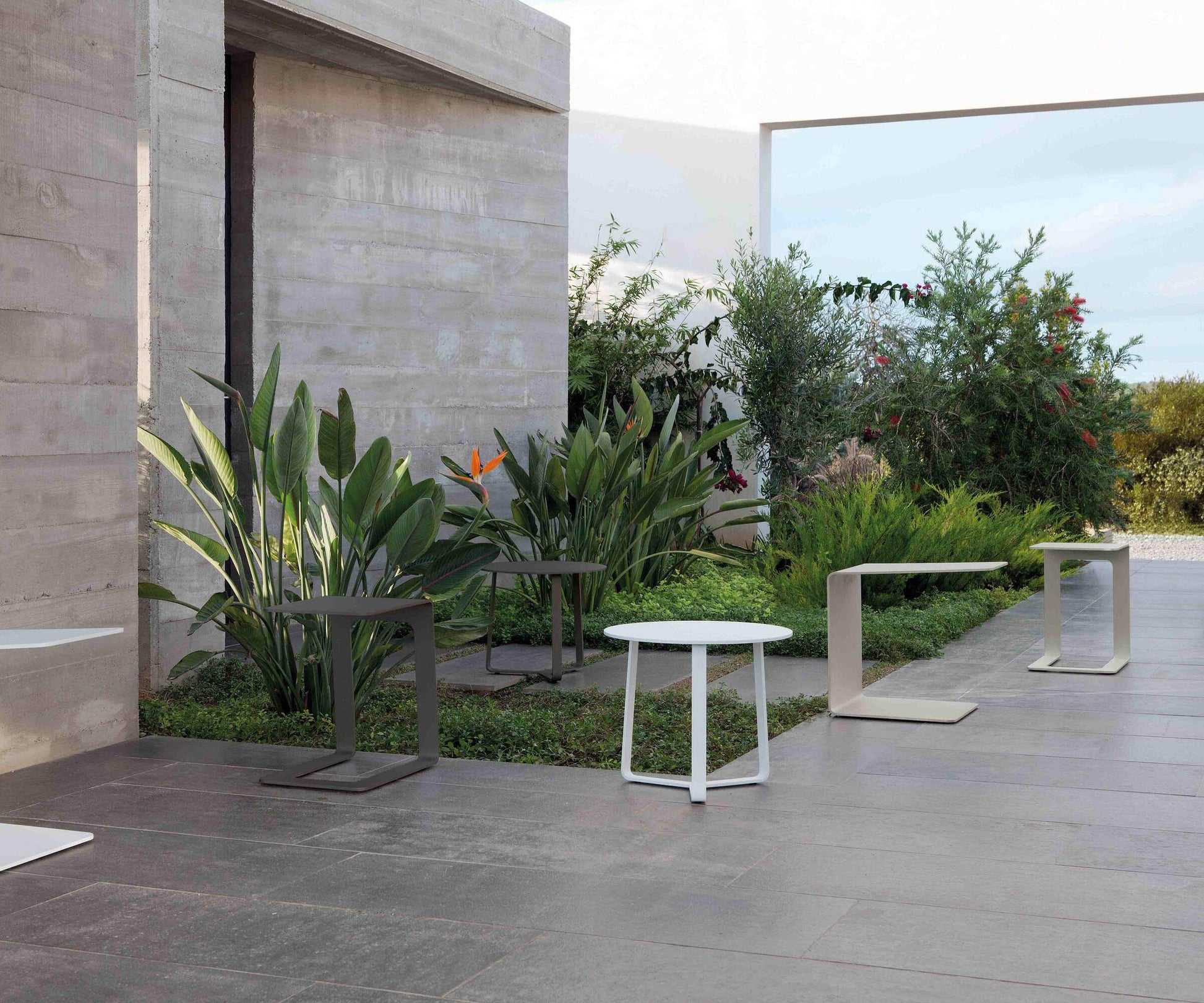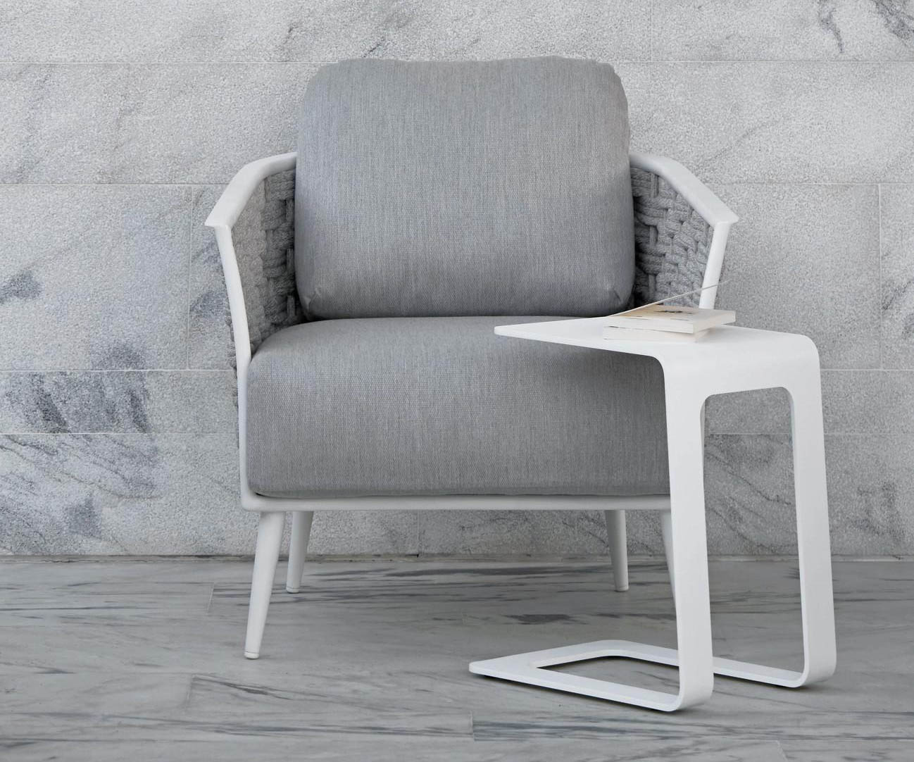 Striking minimalism. Composed of a single frame made of bent aluminium, Lina is every bit as light as it appears to be. Thanks to its open structure, the side table slides effortlessly over your sofa or lounge bed to keep your favourite book or drinks within arm’s reach.
