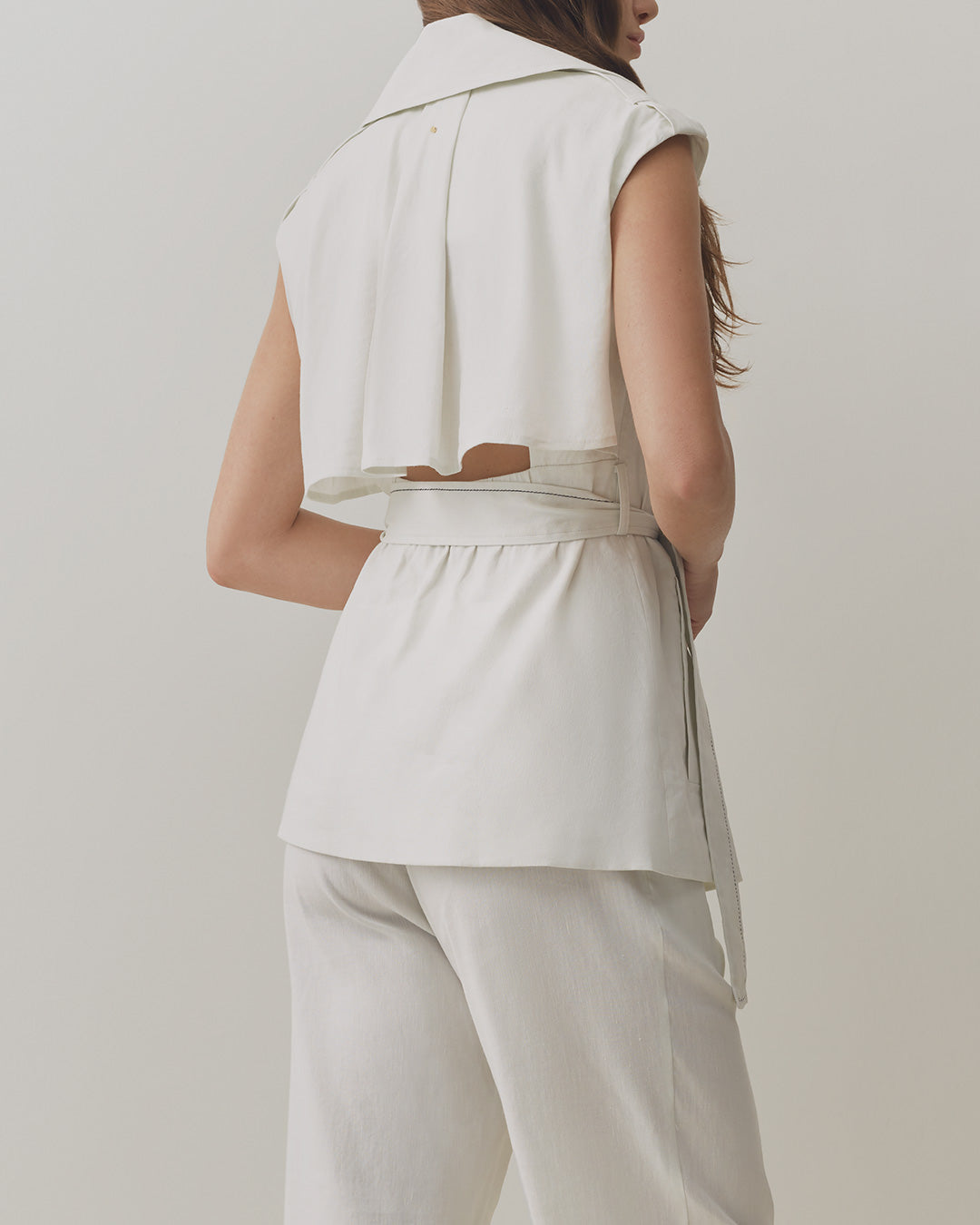 A relaxed rendition of the classic vest for a fresh spin on summer workwear, softly structured in airy linen for a statement piece that can be dressed up or down. Complete the look with our matching Linen Pleated Wide-Leg Pant.