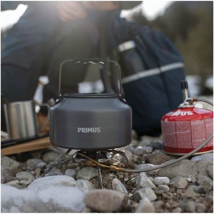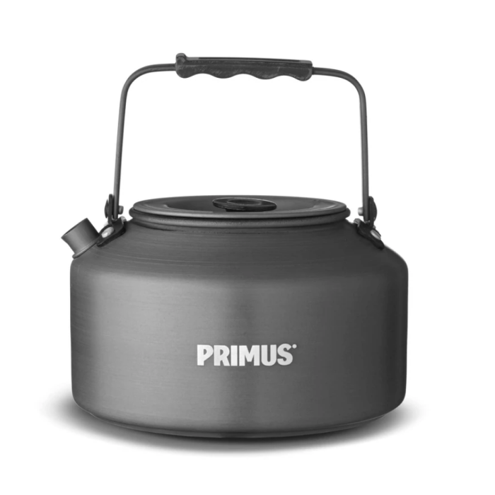 This lightweight coffee/tea kettle made of hard-anodized aluminum is a lovely attribute when camping. Folding handle. Comes in a practical net stuff sack.