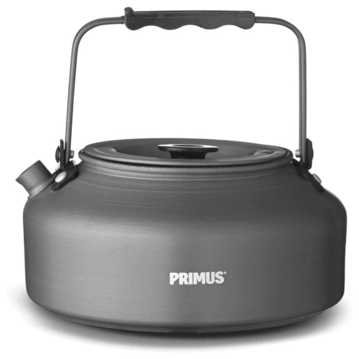 This lightweight coffee/tea kettle made of hard-anodized aluminum is a lovely attribute when camping. The size is great for big coffee or tea drinkers. Folding handle. Comes in a practical net stuff sack.