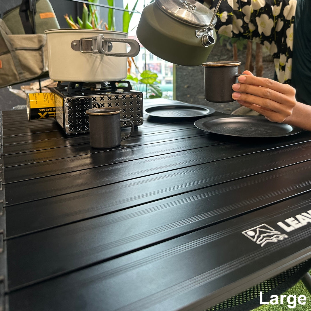 The LNT Azmat Aluminium Table is the latest offering in LNT's outdoor gear collection, designed to provide ultimate convenience and versatility for your outdoor adventures. Built with a sturdy aluminum alloy frame and featuring an adjustable height, this sleek black table is as stylish as it is functional. Whether used on its own or paired with the LNT Patirasa Foldable Wagon, the Azmat Aluminium Table is an indispensable companion for camping, picnics, and more.